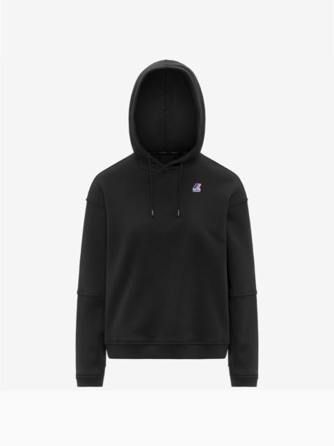 Black Women's Fleece Hoodie for Outdoor and Leisure Activities Ninette is a women’s hoodie designed for outdoor activities, sports and leisure. Made from brushed cotton-blend fleece, it offers comfort, full freedom of movement and ribbed trims for a soft, secure fit. - Brushed cotton and polyester fleece fabric - Medium warmth rating - Adjustable drawstring hood - Ribbed cuffs and hem - Double-stitched back yoke - Regular fit - Colour-printed logo Features Description: Fleece, Hoodie Gender: Woman Season: Fall, Winter Composition Entire: 34% Cotton, 66% Polyester Style: K4147KW - Color: USY