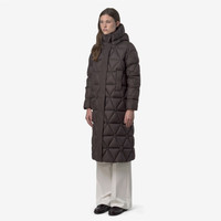 Ruenne is a women’s long puffer jacket with a city-ready look, designed to tackle colder temperatures. Made from lightweight, quilted, water-repellent and windproof fabric and filled with natural Molina down, it offers excellent warmth with minimal bulk. It features an enveloping hood and a quilted flap closure that echoes the design of the front pockets. - Water-repellent and windproof fabric - Natural Molina down padding - High warmth rating - High collar with adjustable drawcord - Enveloping hood - Zip fastening with quilted protective flap - 2 snap-button pockets - Regular fit - K-Way tape detail at the cuff Features Description: Jackets, Long Gender: Woman Season: Fall, Winter Composition Entire: 100% Polyester Lining: 100% Polyester Padding: 90% Duck Down, 10% Duck Feather Style: K7136JW - Color: B38