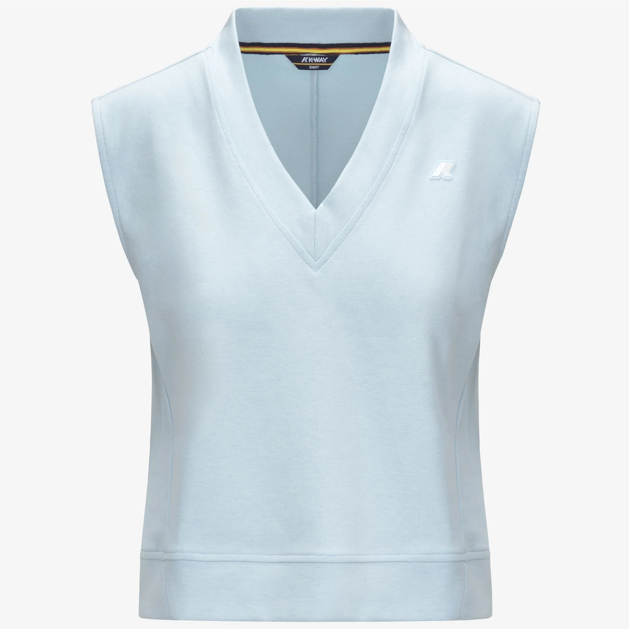 Baby Blue Women's Relaxed Fit Athleisure T-Shirt Saonne is a women's T-shirt with an athleisure feel and a relaxed fit. Perfect for travelling, practising sports and unwinding, it is made from soft technical interlock with a high cotton percentage that gently follows your movements. The garment is characterised by a V-neckline and very short cap sleeves. - Stretch interlock fabric - V-neck design - Regular fit - White silicone logo patch Features Description: T-Shirts & Top, T-Shirt Gender: Woman Season: Spring, Summer Composition Entire: 80% Cotton, 6% Elastane, 14% Polyester Style: K2141JW - Color: 121