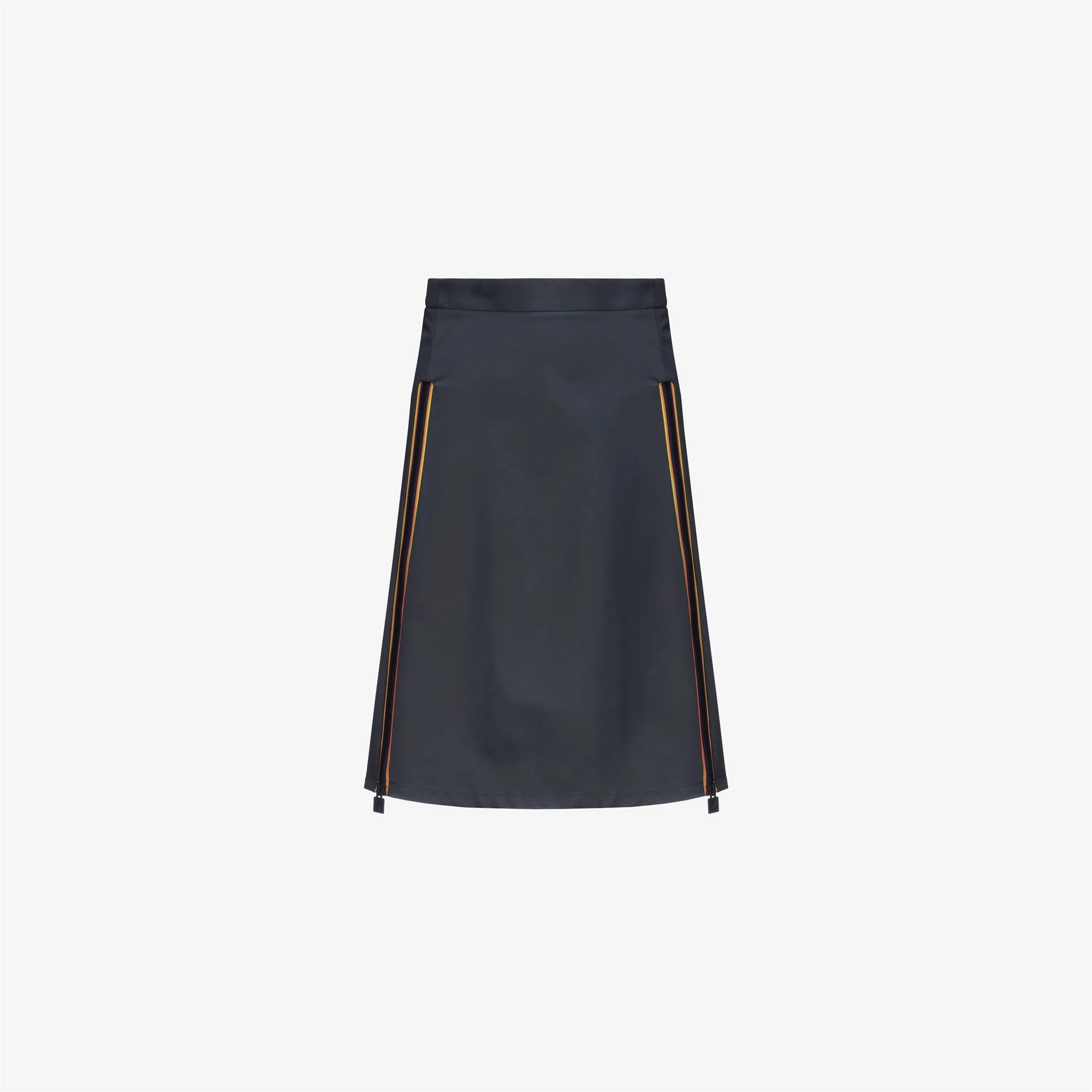 Blue Women's Midi Skirt with Wool and Satin Fabric Sherry is a midi skirt that blends classic tailoring with a bold, eclectic twist. Its distinctive dual-fabric design combines technical Woolmark®-certified wool on the front and water-resistant recycled satin on the back, providing style and protection for unpredictable mid-season weather. The side zipped slits in K-Way’s signature colours allow for customizable opening adjustment. - High-waisted midi cut - Front fabric: three-layer Woolmark®-certified technical wool with insulating membrane and fabric lining - Back fabric: recycled water-resistant satin - Water resistance: 5000 mm water column - Breathability: 5000 g/sqm/24h - Concealed zip closure at the back - Adjustable zipped side slits - Regular fit Features Description: Skirts, Longuette Gender: Woman Season: Fall, Winter Composition Main Fabric: 16% Poliuretane, 84% Recycled Polyamide Second Fabric: 18% Polyester, 20% Viscose, 62% Wool Style: K7138CW - Color: XCT