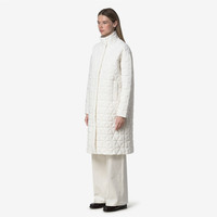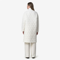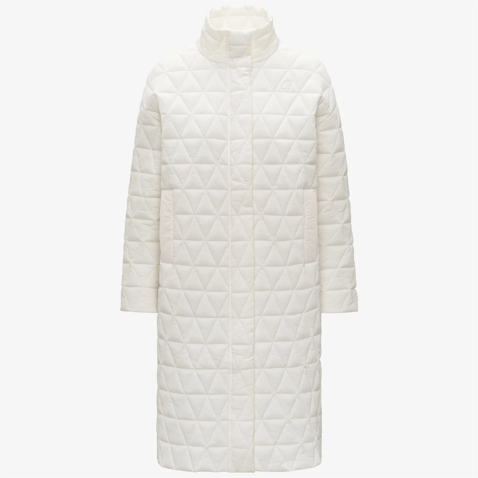 Sonja is a women’s long jacket with a soft, feminine appeal, designed for mid-season wear. Made from water-repellent and windproof recycled nylon, this quilted coat features lightweight PrimaLoft® insulation and a padded high collar for light rain protection and a clean look. - Water-repellent and windproof recycled nylon fabric - Eco-friendly PrimaLoft® padding - Triangle quilting - Medium warmth rating - Padded high collar - Zip fastening with protective flap - 2 snap-button pockets - Regular fit - White silicone logo patch Features Description: Jackets, Long Gender: Woman Season: Spring, Fall, Winter Composition External: 100% Nylon Lining: 55% Nylon, 45% Recycled Nylon Padding: 100% Recycled Polyester Style: K2136IW - Color: X42