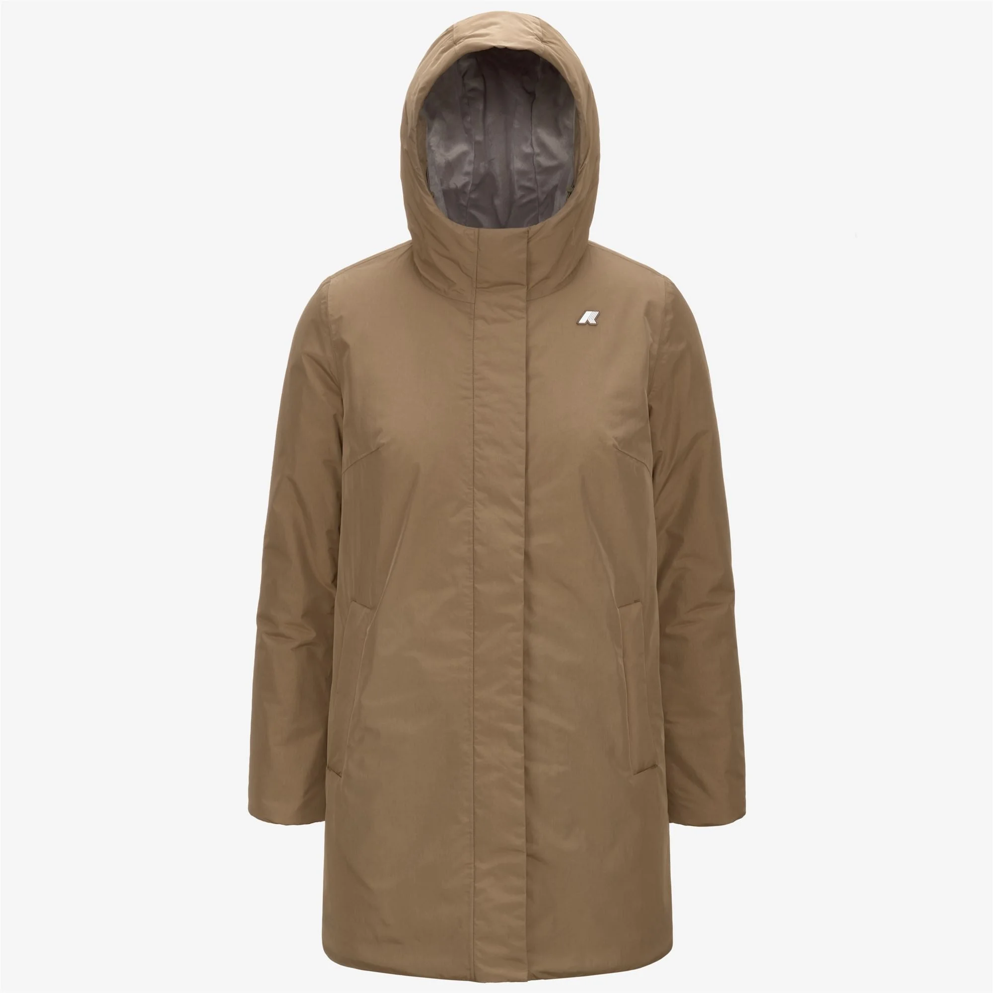 Beige green Women's Mid-Length Warm Jacket with Soft Touch Fabric The Sophie women’s mid-length jacket is characterised by a slim feminine silhouette and a mid level of warmth perfect for in between seasons. This style is crafted from a soft touch and performing fabric, insulated with our classic lining fabric but updated for an even softer feel against the skin. Elasticated cuffs and a storm flap provide protection from the wind, whilst drawstrings ensure a custom fit. - Waterproof fabric - Soft fabric lining - Lightweight synthetic padding - Medium warmth - Heat-taped seams - Fixed adjustable hood with elastic cords and stoppers - Zip fastening with storm flap - Elasticated cuffs - 2 zip pockets - Adjustable hem with elastic cords - Regular fit - White silicone logo patch Features Description: Jackets, Mid Gender: Woman Season: Fall, Winter Composition External: 100% Polyester Lining: 100% Polyester Padding: 100% Recycled Polyester Style: K71326W - Color: AS6