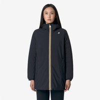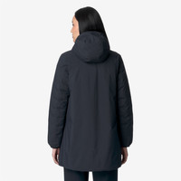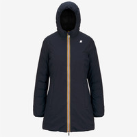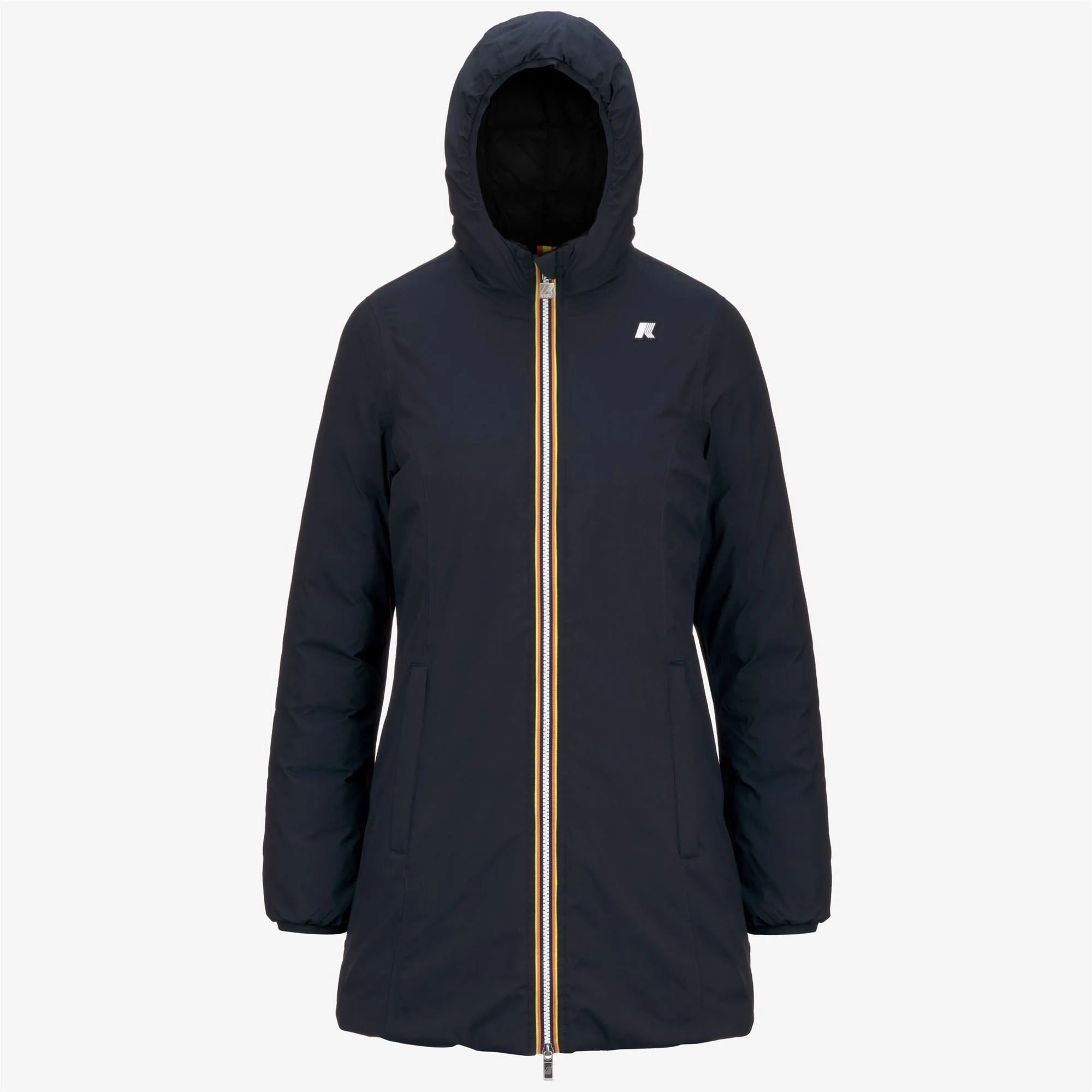 Blue Black Women's Reversible Mid-Length Winter Jacket The Sophie women’s mid-length jacket is characterised by a slim feminine silhouette and a cosy construction, specially designed for harsh winter temperatures. Its reversible design provides a 2-in-1 style, combining a smooth technical side with a contrast quilted nylon reverse. The inside is padded with PrimaLoft: a highly insulating recycled fibre. - Waterproof, water-repellent, windproof and breathable eco-polyester - Windproof and breathable quilted nylon with down filling - PrimaLoft padding - Ultra-warm - Reversible - Heat-taped seams - Adjustable hood with elastic cords - Zip fastening - Elasticated cuffs - 2 zip pockets - 2 snap button pockets - Regular fit - White silicone logo Features Description: Jackets, Mid Gender: Woman Season: Fall, Winter Composition External: 24% Poliuretane, 76% Recycled Polyester Padding: 90% Duck Down, 10% Duck Feather Lining: 100% Recycled Nylon Style: K8134DW - Color: A28
