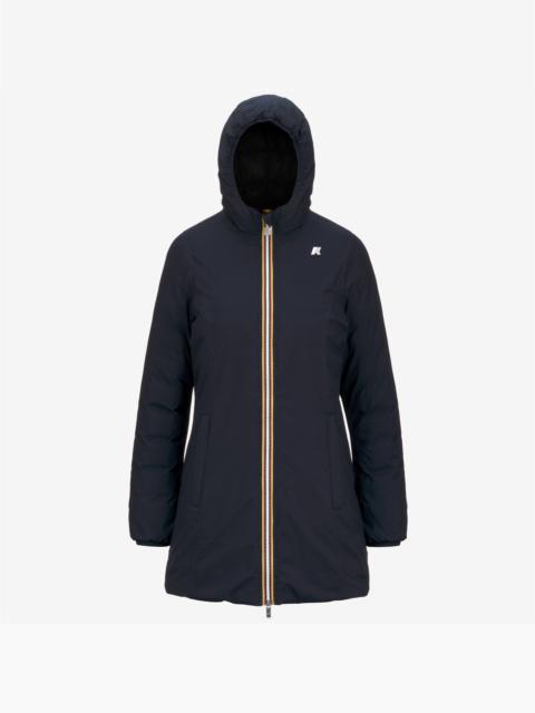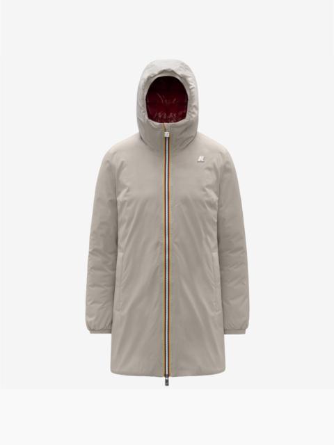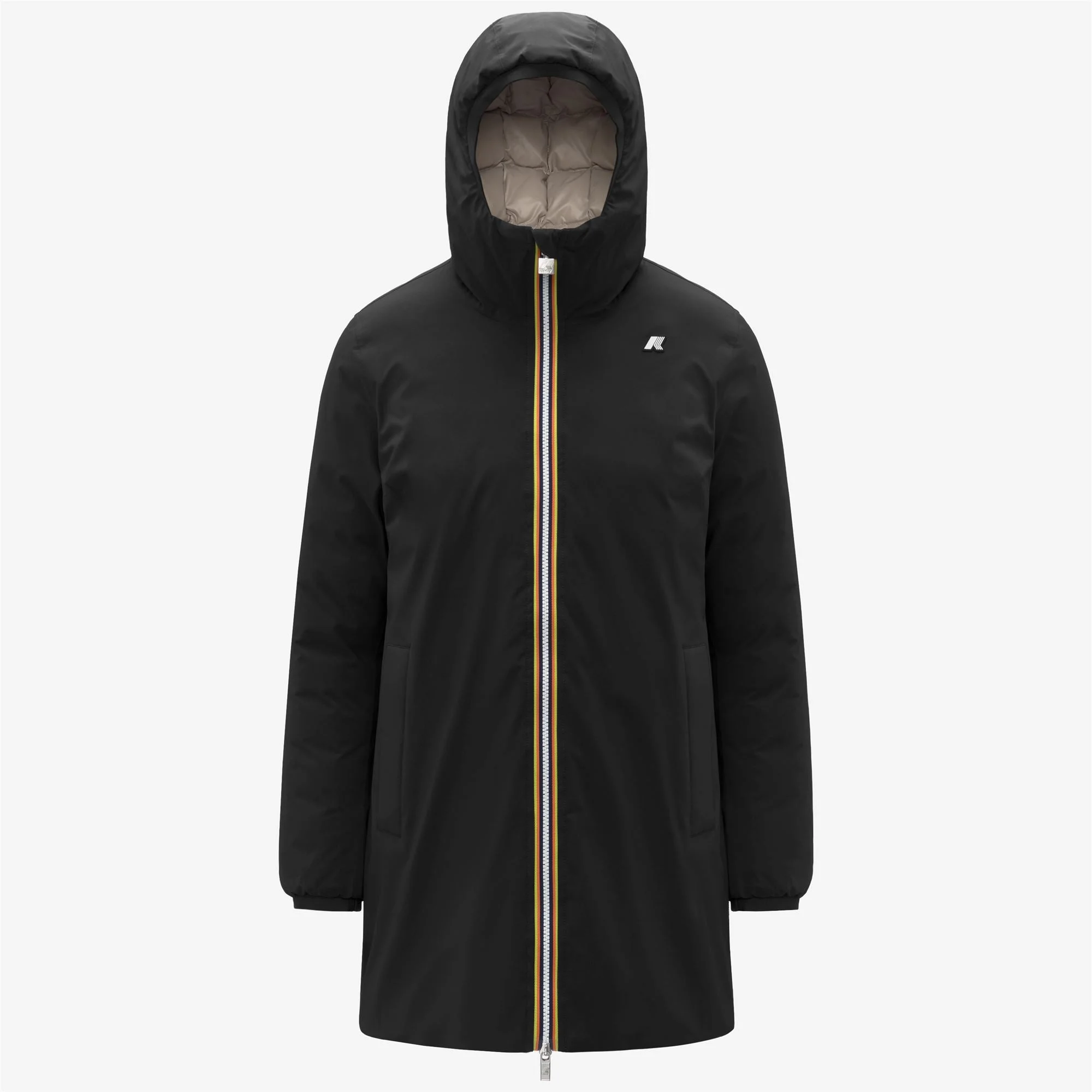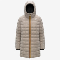 Black Beige Women's Reversible Winter Jacket with Down Padding The Sophie women’s mid-length jacket is characterised by a slim feminine silhouette and a cosy construction, specially designed for harsh winter temperatures. Its reversible design provides a 2-in-1 style, combining a smooth technical side with a contrast quilted nylon reverse. The inside is padded with PrimaLoft: a highly insulating recycled fibre. - Waterproof, water-repellent, windproof and breathable eco-polyester - Windproof and breathable quilted nylon with down filling - PrimaLoft padding - Ultra-warm - Reversible - Heat-taped seams - Adjustable hood with elastic cords - Zip fastening - Elasticated cuffs - 2 zip pockets - 2 snap button pockets - Regular fit - White silicone logo Features Description: Jackets, Mid Gender: Woman Season: Fall, Winter Composition External: 24% Poliuretane, 76% Recycled Polyester Padding: 90% Duck Down, 10% Duck Feather Lining: 100% Recycled Nylon Style: K8134DW - Color: BC9