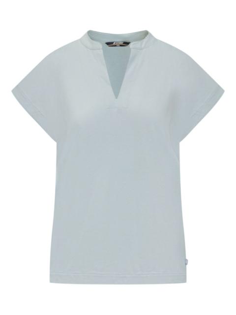 V-neck T-shirt Highlights - Blue - V-neck - Short sleeves - Centre back vent - Straight hem - Relaxed fit Imported Composition Fabric 100% Washing instructions Read Manufacturer Guidelines