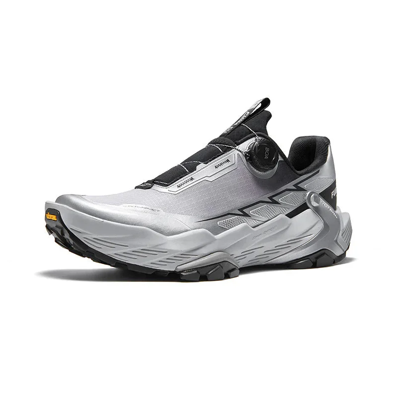 ●The BOA® Fit System delivers micro-adjustable, precision fit engineered to perform in the toughest conditions ●The BOA® Fit System is guaranteed for the lifetime of the product on which it is integrated 1. Tyre-like Lugs for Powerful Grip ●Multi-directional triangle lugs on forefoot provide powerful grip on uphill trails ●125mm ultra wide forefoot adds more grip area ●Vibram Megagrip outsole offers unparalleled grip on wet and slippery surfaces 2. New Power System for Better Cushioning and Rebound ●Dual-density midsole: -Upper part: cushioned -Lower part: supercritical foam ensure that 62% energy can be returned 3. Heel Support System ●TPU heel support frame stabilizes ankle and helps with lateral ankle movement 4. KAILAS 4-point Gaiter Holder System ●KAILAS 4-point gaiter holders can fix an anti-debris gaiter on the shoes firmly, preventing debris from entering the shoe ●Upper: Engineered mesh / TPU film ●Bottom: Vibram Megagrip outsole ●Lining: Sandproof and breathable lining ●Recommended Use: Trail running, mixed terrain