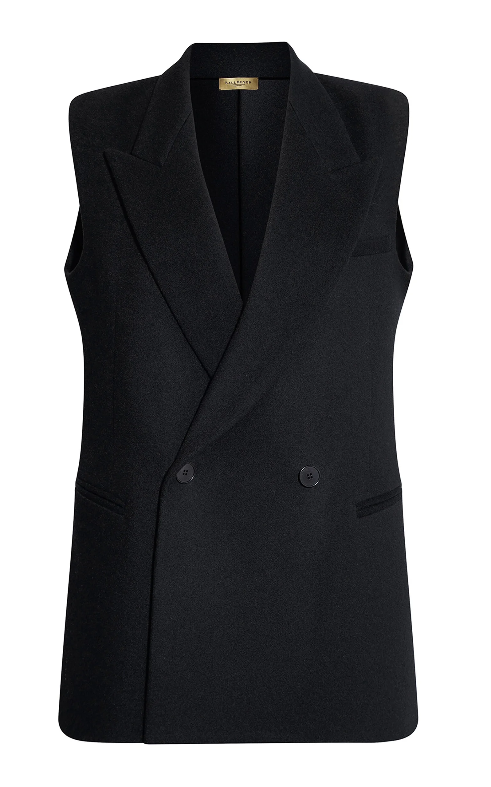 PRODUCT DETAILS - Fall '25 - Loose fit, sleeveless vest, high collar - Lined - Composition: 100% WOOL / LINING: 100% BEMBERG TAFFETA - Button fastening - *Dry clean - Made in United States of America