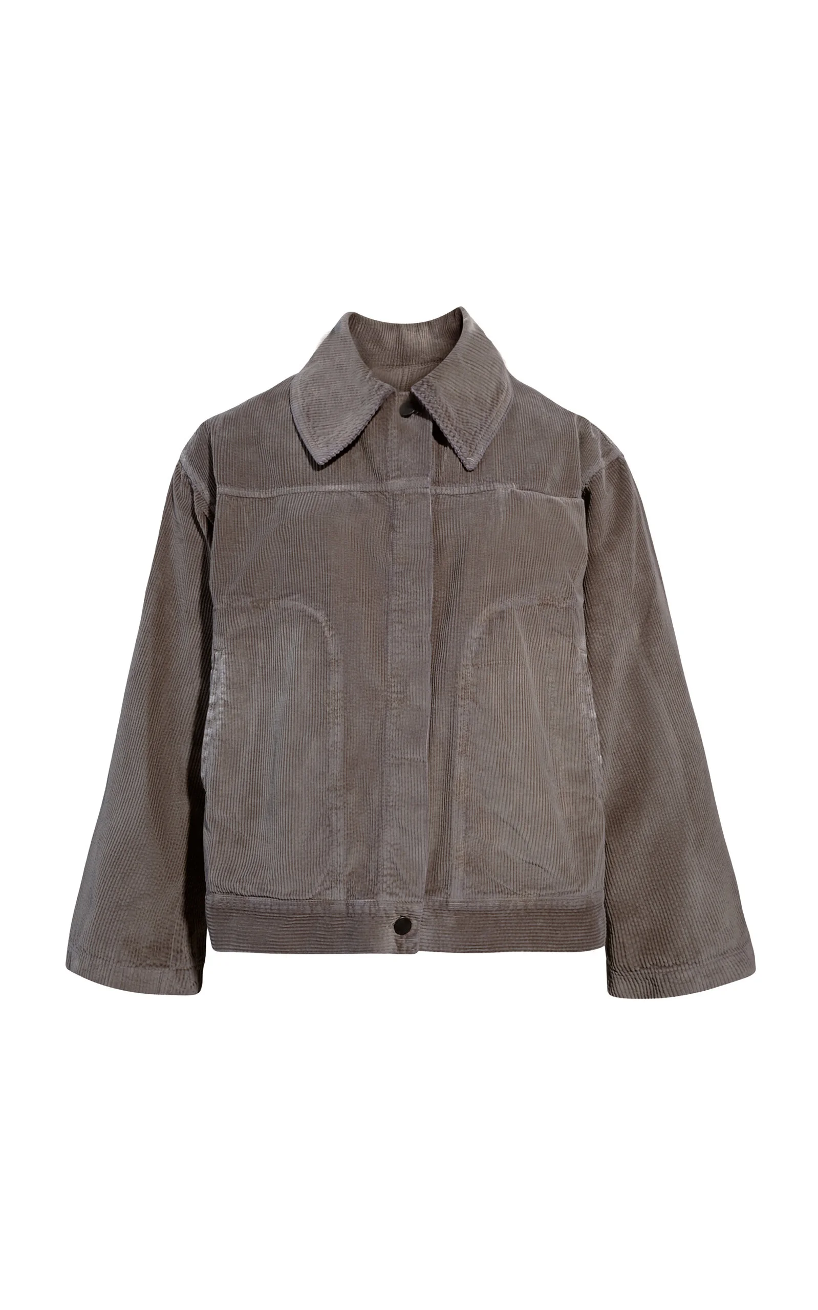 The New York-based brand revises hard-working wardrobe essentials to create elevated pieces for the modern, empowered woman. Stylized chore jacket in classic distressed corduroy. Oversized and roomy silhouette with tailored detailing. Curved sleeve shape with adjustable buttons at cuff. Floating stitch welt pockets at front. Small key pocket at front chest. Worn look cotton corduroy with contrasting matte black shank buttons. PRODUCT DETAILS - Fall/Winter ‘25 - Concealed button fastening - Composition: 100% cotton - Dry clean - Designer Color: Mink - Imported
