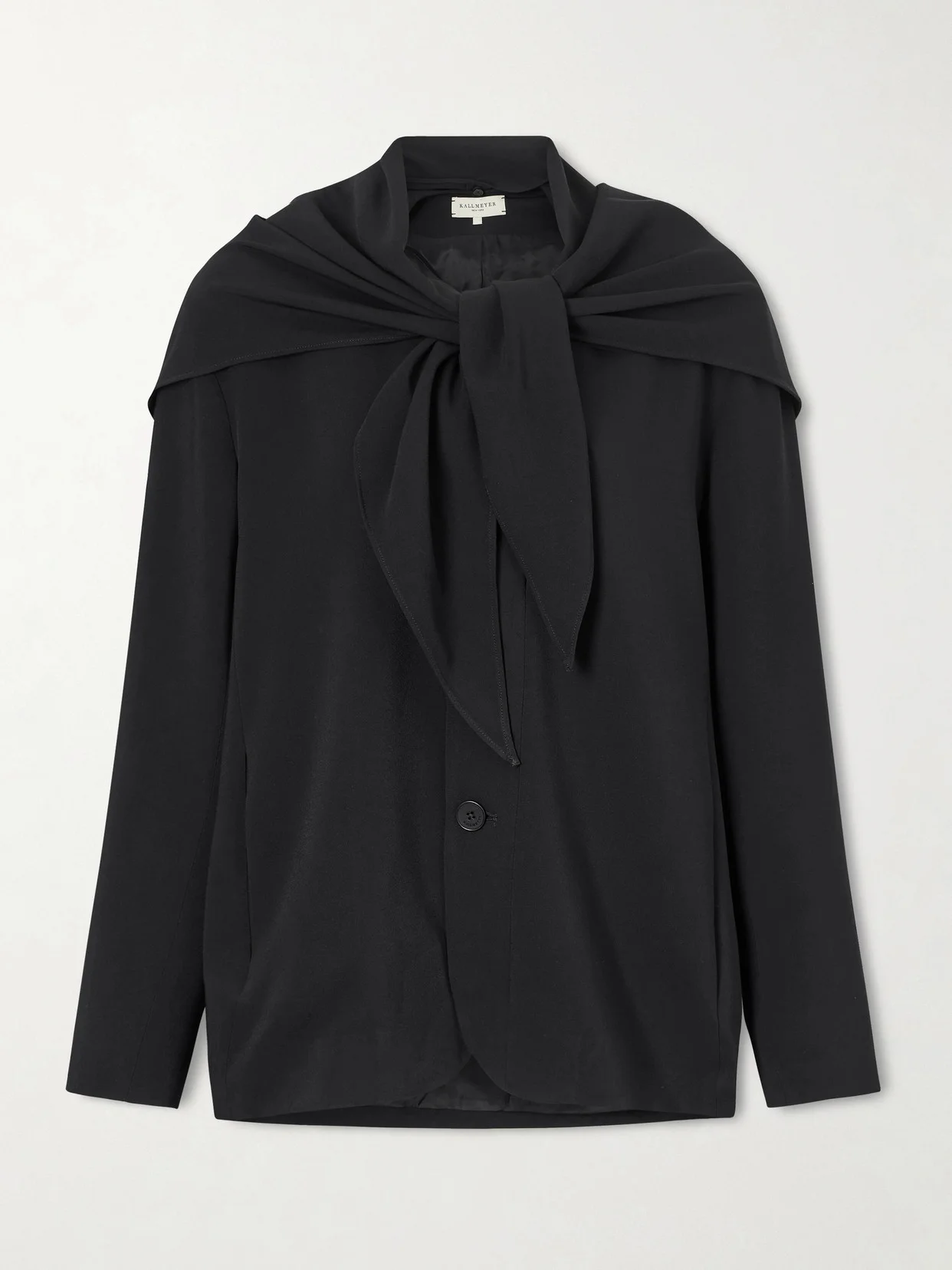 Kallmeyer brings a directional edge to classic tailoring with this ‘Jamie' blazer. Cut from fluid cady, it has an integrated scarf detail that drapes elegantly, adding movement and modern ease.