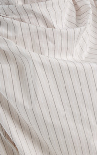 The New York-based brand revises hard-working wardrobe essentials to create elevated pieces for the modern, empowered woman. Long sleeve blouse in striped cotton poplin. Features a dramatic high cowl neck that drapes beautifully across the chest and is gathered at the shoulders. Long, fitted sleeves and a sleek and streamlined silhouette that tucks effortlessly into any bottoms. Buttons down the back for added detail. PRODUCT DETAILS - Resort '26 - Button fastening - Composition: 100% cotton; Stripe: 86% cotton, 14% polyester - Designer color: Dove - Dry clean only - Made in the USA SIZE & FIT - This item fits true to size