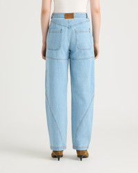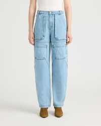 Kiamika is a denim barrel-leg pant designed with utility pockets. - Kanuk's nubuck label at back waistband Fabric details & care - Shell: Denim in 100% cotton - Machine washable Sizing & fit - Inseam for size 26: 31" / 79 cm - Barrel-leg fit - Model is 5'10" and is wearing a size S - Fits true to size