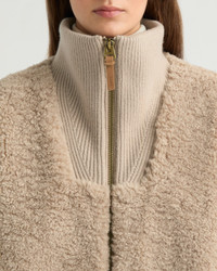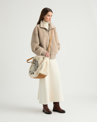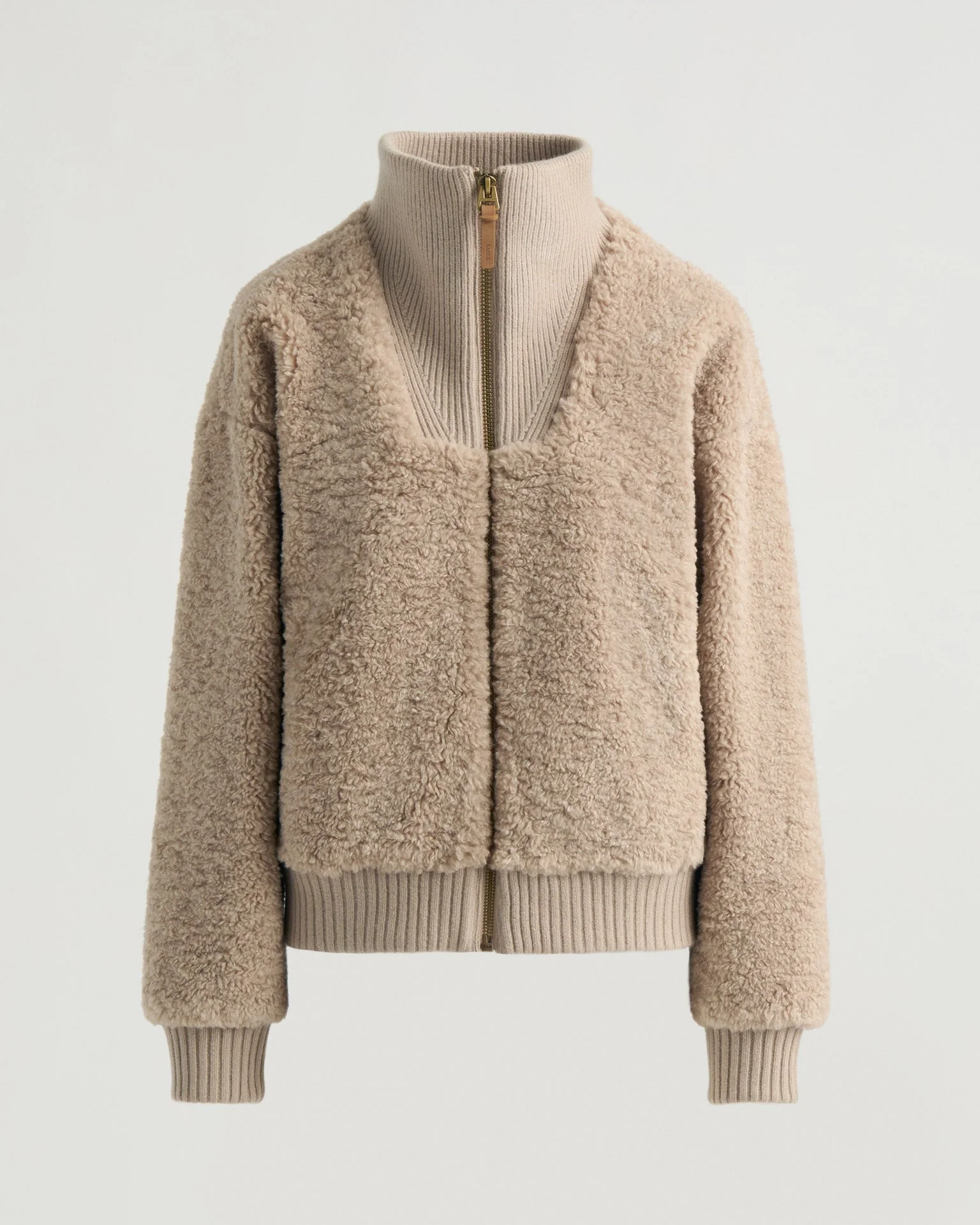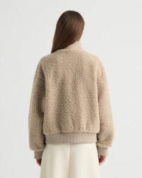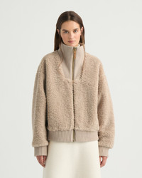 Koge is a bomber crafted in Kanuk’s signature sherpa with merino wool ribbed details. - Wool-blend rib knit collar, cuffs, and waistband - Full front zipper closure - Concealed zippered side pockets Fabric details & care - Shell: Sherpa in 100% polyester - Lining: 100% polyester - Rib: 100% merino wool - Dry clean only Sizing & fit - Center back length for size small: 27" / 69 cm - Relaxed fit - Model is 5'10" and wears a size S - Fits true to size
