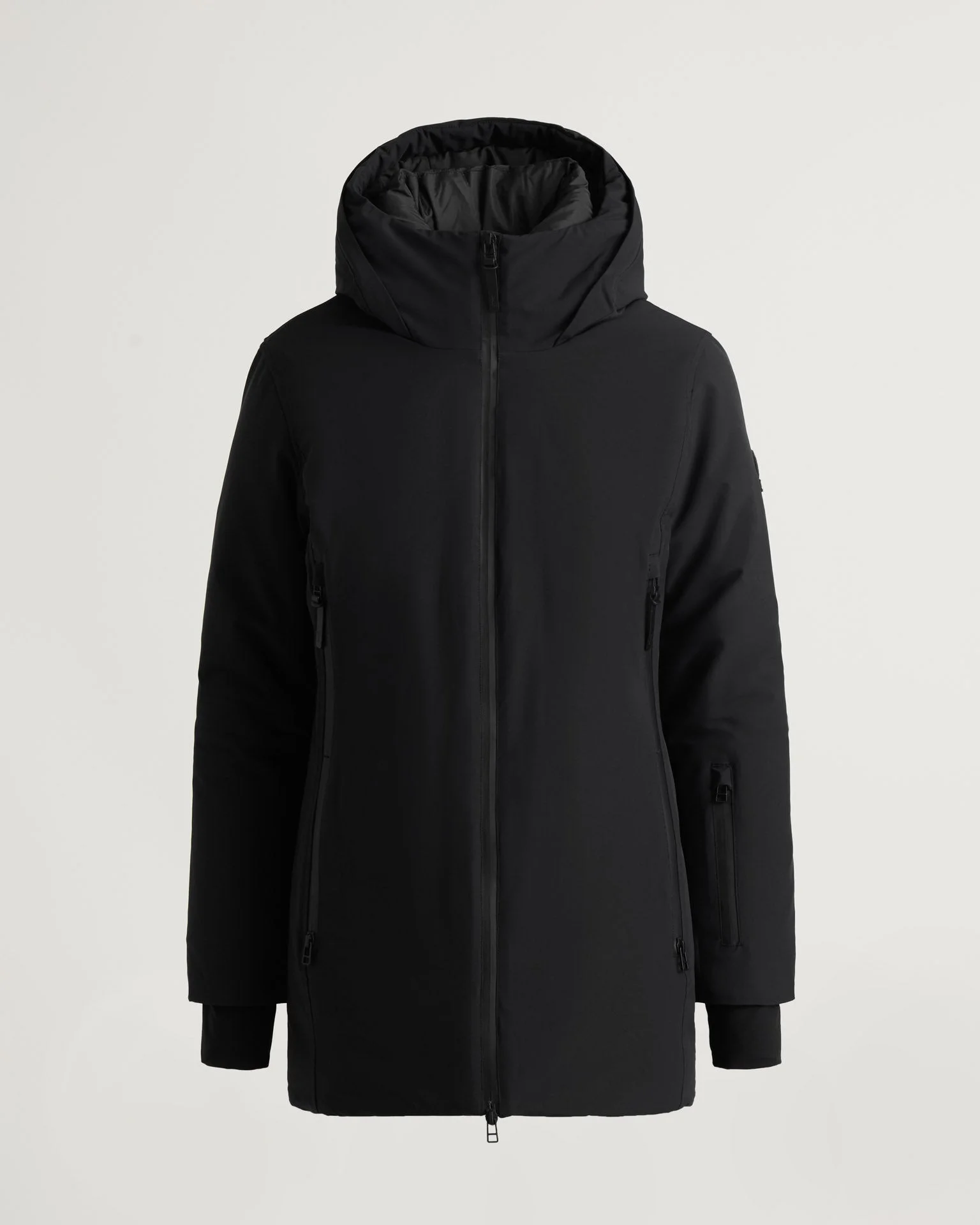 Laurier is a semi-fitted insulated coat with a fixed hood, an inner collar, storm cuffs, and zip pockets. - Comfort zone: -10°C to -20°C - Semi-fitted silhouette - Fixed hood with inner collar - Center front zipper closure - Zippered front pockets and sleeve pocket - Lycra storm cuffs Fabric details & care - Water-resistant, breathable, windproof - Shell: Mini-Ottoman in 100% recycled polyester - Lining: 100% polyester - Insulation: PrimaLoft® Black Insulation - Spot clean or dry clean recommended Sizing & fit - Center back length size S: 33" / 84 cm - Semi-fitted - Model is 5'10" and wears a size S - Fits true to size