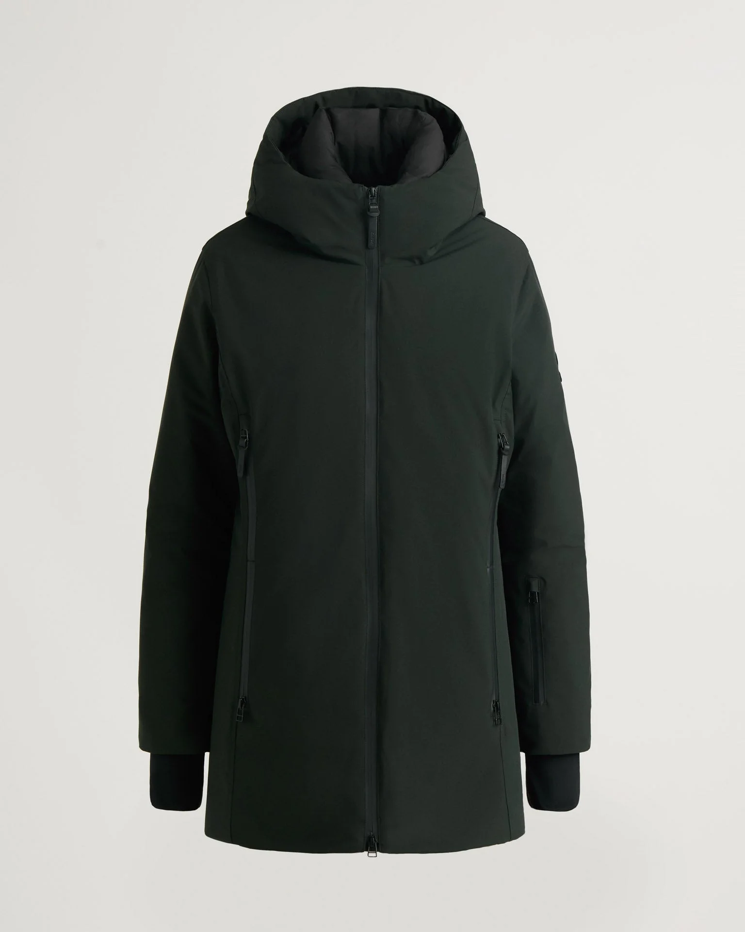 Laurier is a semi-fitted insulated coat with a fixed hood, an inner collar, storm cuffs, and zip pockets. - Comfort zone: -10°C to -20°C - Semi-fitted silhouette - Fixed hood with inner collar - Center front zipper closure - Zippered front pockets and sleeve pocket - Lycra storm cuffs - Made in China Fabric details & care - Water-resistant, breathable, windproof - Shell: Mini-Ottoman in 100% recycled polyester - Lining: 100% polyester - Insulation: PrimaLoft® Black Insulation - Machine wash Sizing & fit - Center back length size S: 33" / 84 cm - Semi-fitted - Model is 5'10" and wears a size S - Fits true to size