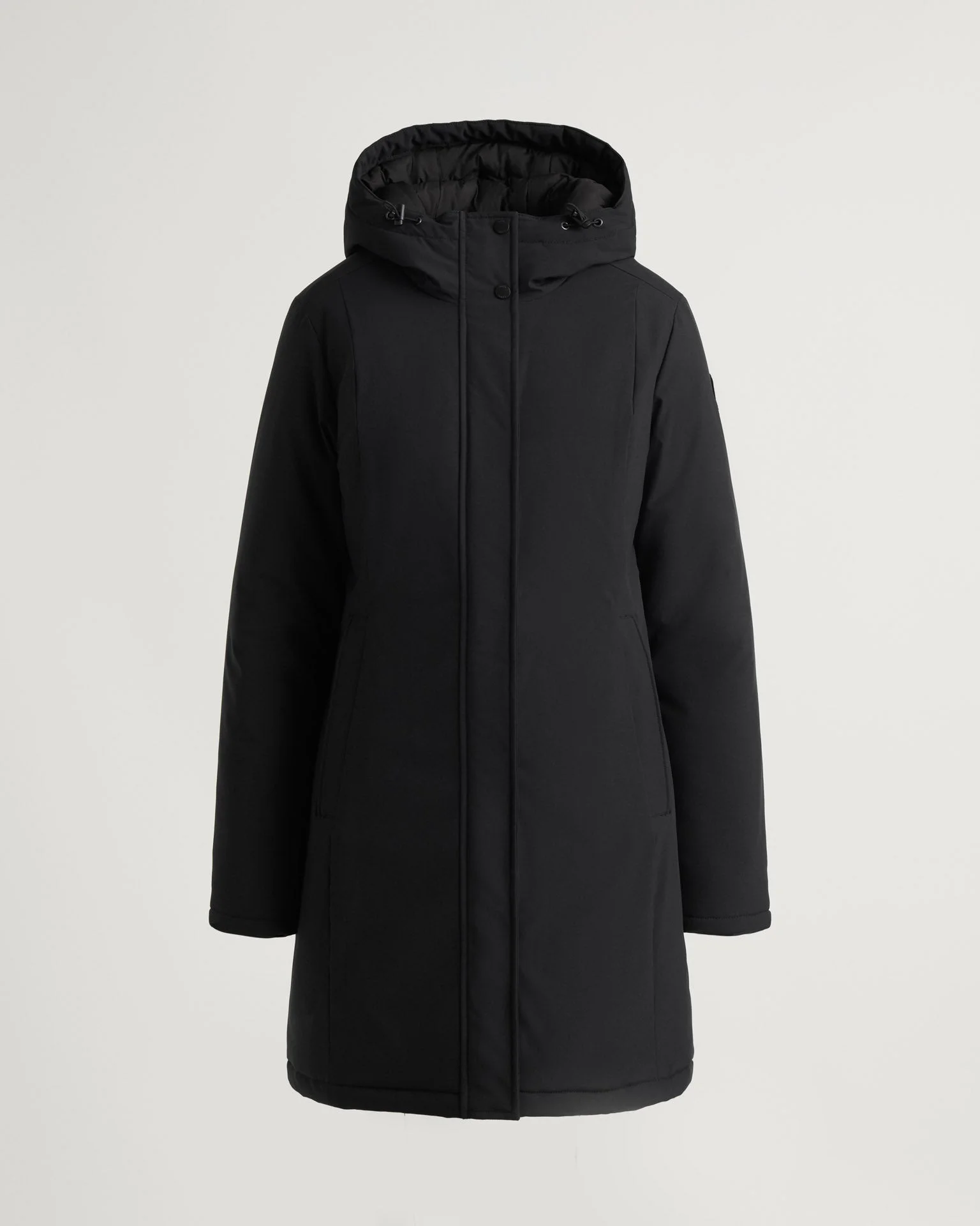 Minganie is a semi-fitted down coat with ribbed storm cuffs, an adjustable hood, and sleek quilting. - Comfort zone: -20°C to -25°C - Fixed hood with adjustable drawcord - Adjustable snap tab at back of hood - Center front zipper closure - Zippered front pockets - Rib knit storm cuffs - Made in China Fabric details & care - Water-resistant, breathable, and windproof - Shell: Mini Twill in 100% nylon - Lining: 100% recycled nylon - Insulation: PrimaLoft® Black Insulation - Dry clean only Sizing & fit - Center back length size S: 38" / 97 cm - Semi-fitted - Model is 5'10" and wears a size S - Fits true to size