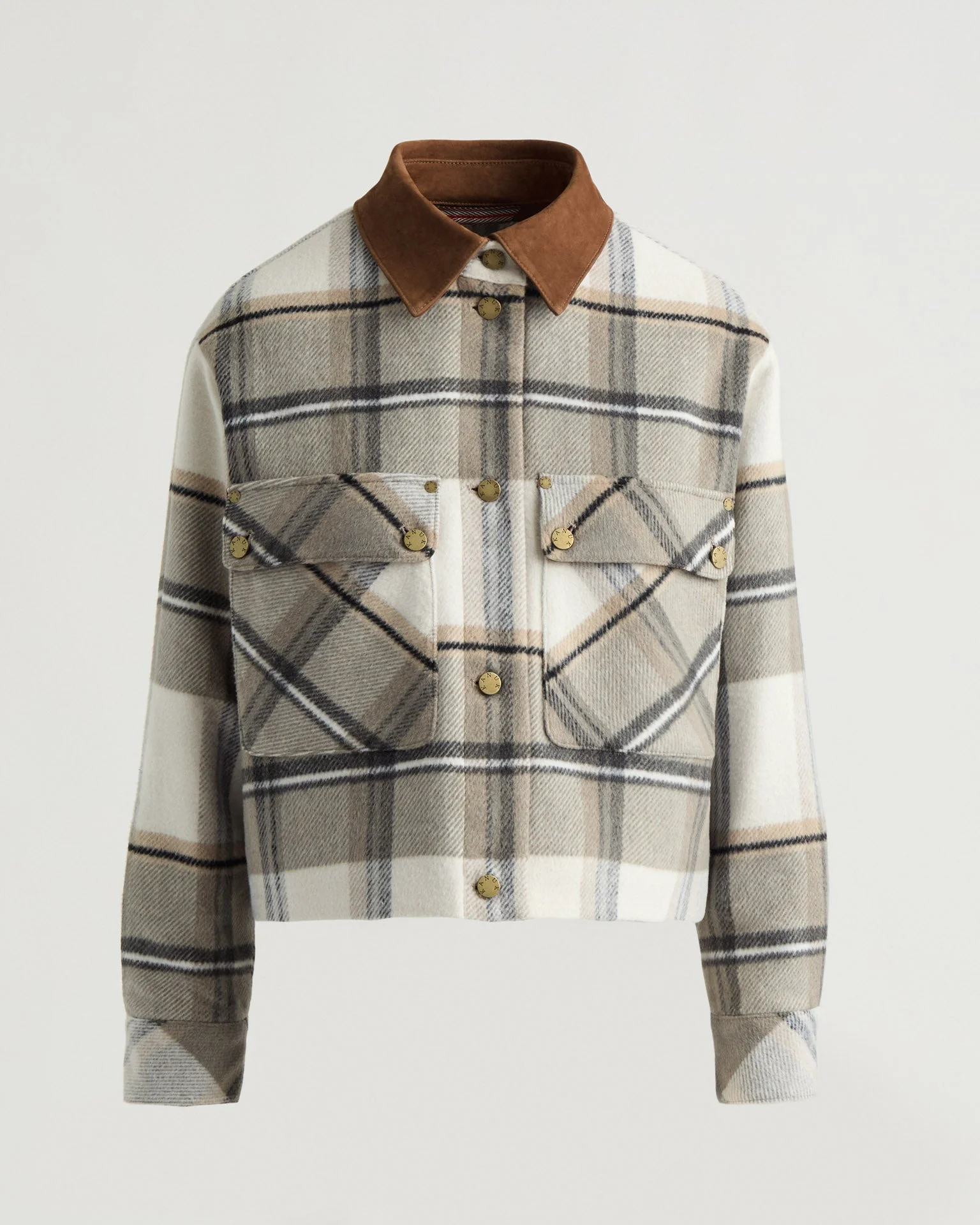 Neuville is a cropped plaid jacket with inner diamond quilting, and a nubuck collar. - Comfort zone: 0°C to -10°C - Nubuck shirt collar - Kanuk's owl logo embroidered on left sleeve - Diamond quilted lining with PrimaLoft® - Oversized front patch pockets - Adjustable cuffs Fabric details & care - Shell: Brushed Plaid in 82% polyester, 12% acrylic & 6% other fibers - Collar: Genuine nubuck - Lining: 100% polyester - Insulation: PrimaLoft® Silver Active polyInsulation - Dry clean only - This garment features genuine nubuck leather. Due to the natural characteristics of the material, subtle variations in texture, grain, or colour may occur. These are not imperfections, but natural markings that highlight authenticity of each piece. Sizing & fit - Center back length for size small: 22" / 56 cm - Relaxed fit - Model is 5'10" and wears a size S - Fits true to size. Size up for a more oversized look