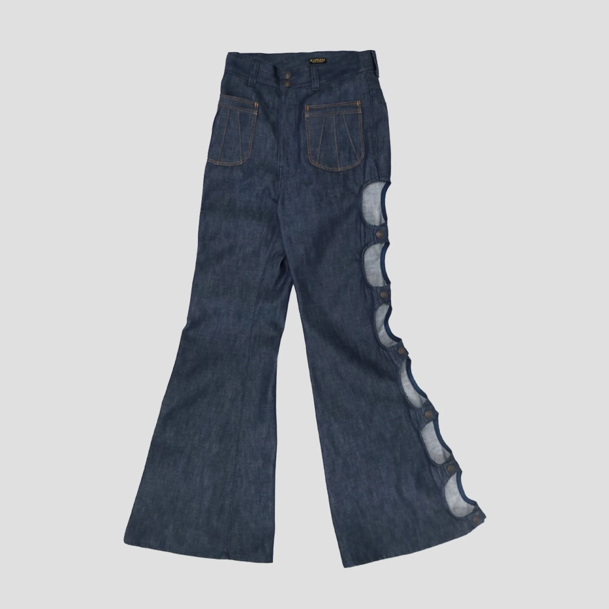 *100% Cotton *Zipper-fly *2 Front Pockets and 2 Back Pockets *See-through Side Seem *Made in Japan