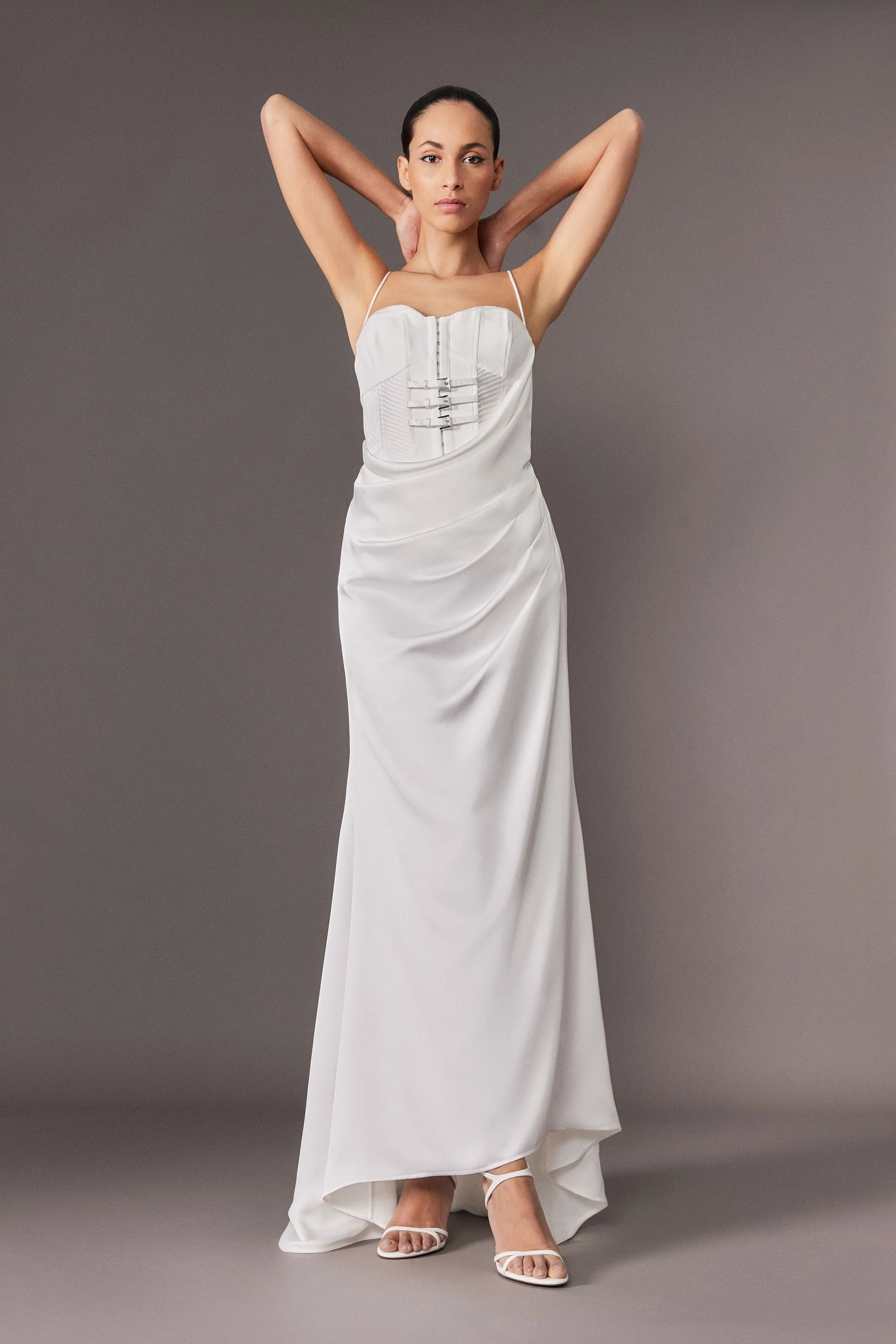 Archive Collection - Tailored Satin Drape Corset Fishtail Maxi Dress