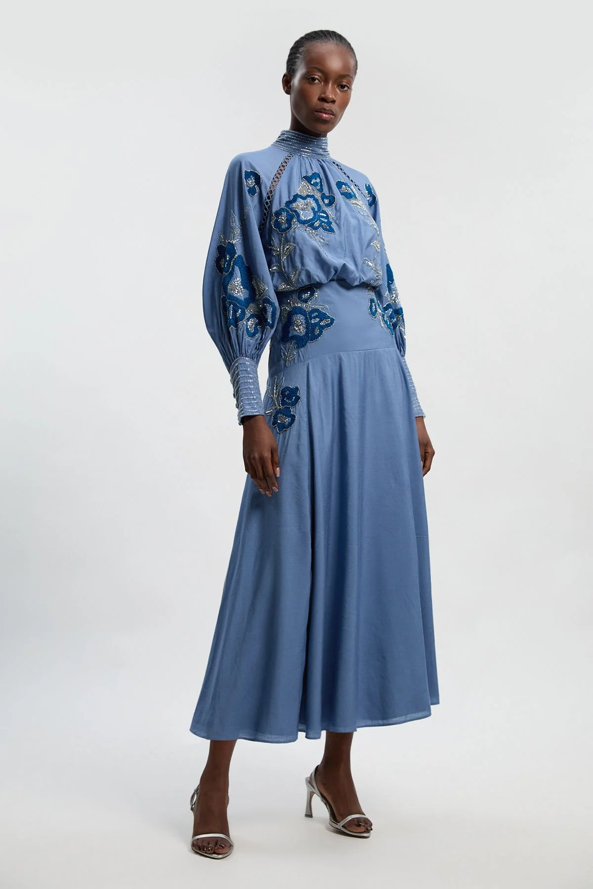 - Exquisite embroidery and beadwork create an intricate pattern across the bodice and skirt - Statement balloon sleeves with fitted cuffs add dramatic volume to this woven maxi dress - Elegant high neckline offers sophisticated coverage perfect for formal occasions - Flowing maxi silhouette with a defined waistline creates a flattering feminine shape - Delicate glass beading catches the light for subtle sparkle and dimension This captivating maxi dress showcases exceptional craftsmanship with its intricate embroidery and beadwork. The dramatic balloon sleeves create a striking silhouette while the high neckline adds a touch of refinement. The fitted waist transitions beautifully into a flowing skirt that moves gracefully with every step. Style with minimal jewellery to let the dress command attention-a pair of delicate drop earrings and strappy heels, as shown, complete the ensemble perfectly. This Karen Millen piece transitions effortlessly from wedding guest attire to race day elegance. For cooler evenings, drape a lightweight pashmina over your shoulders or add a tailored cropped jacket. The ankle-grazing length works wonderfully for formal garden parties, graduation ceremonies, or sophisticated evening events where making an impression matters. Product Details & Care Shell: 84% Viscose, 16% Nylon, Lining: 100% Polyester, Embroidery: 100% wool, Trim: 100% metallised fibre, metallic fibre, bead: Glass, sequin: 100% Polyvinyl Chloride, Place in delicates bag prior to cleaning, . Model wears UK Size 8/ US Size 4. Model height approx: 5"9. Length approx: 145cm