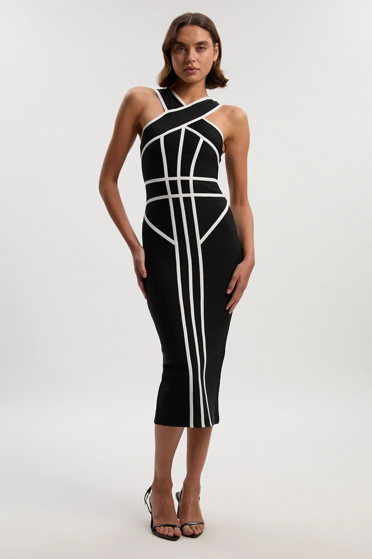 Bandage Knit Contrast Cross Front Dress
