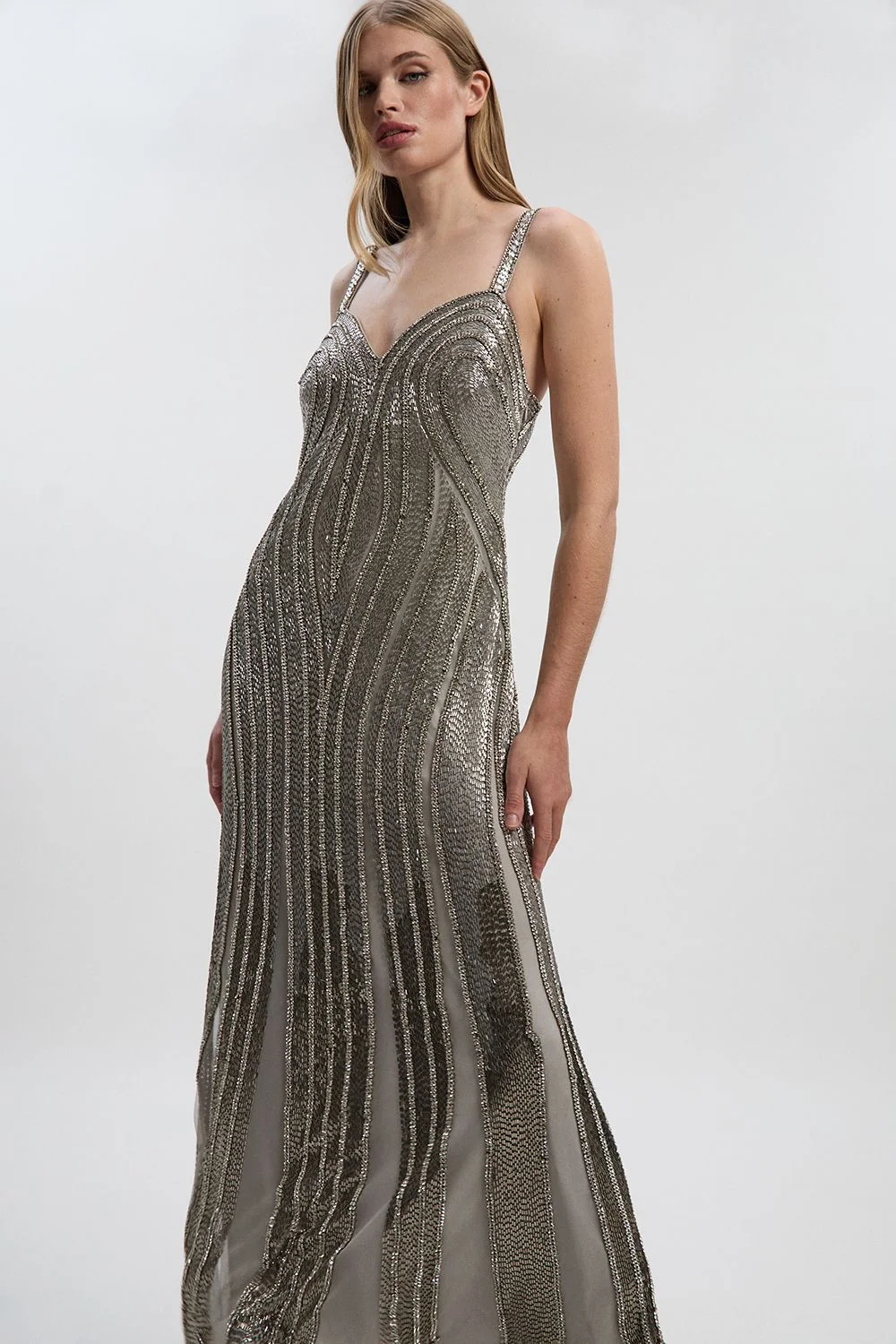 Make a spectacular entrance at your next formal occasion in this Karen Millen beaded maxi dress. The exquisite contoured beadwork creates a dazzling effect that commands attention, whilst the classic sweetheart neckline frames your decolletage with timeless elegance. The thoughtfully designed silhouette skims your curves before gently flaring at the hem, creating a graceful movement as you walk. Style with metallic strappy heels and a compact clutch for black-tie events or evening galas. Beaded embellishments Sweetheart neckline with structured bodice Wide shoulder straps Maxi silhouette with flared hem Intricate beadwork creates a vertical pattern Product Details & Care Main: 100% Polyester. Lining: 100% Polyester. Sequin: Plastic. Bead: Glass/Plastic. Sequins can cause minor irritation. Please take care during wear. Some loss of beads may occur when worn/cleaned. Cool iron on reverse. Do not iron embellishment. Turn inside out and place in a mesh laundry bag.