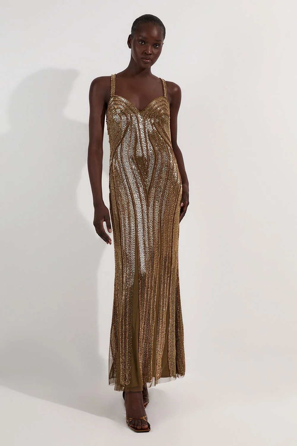 Make a spectacular entrance at your next formal occasion in this Karen Millen beaded maxi dress. The exquisite contoured beadwork creates a dazzling effect that commands attention, whilst the classic sweetheart neckline frames your decolletage with timeless elegance. The thoughtfully designed silhouette skims your curves before gently flaring at the hem, creating a graceful movement as you walk. Style with metallic strappy heels and a compact clutch for black-tie events or evening galas. Beaded embellishments Sweetheart neckline with structured bodice Wide shoulder straps Maxi silhouette with flared hem Intricate beadwork creates a vertical pattern Product Details & Care Main: 100% Polyester. Lining: 100% Polyester. Sequin: Plastic. Bead: Glass/Plastic. Sequins can cause minor irritation. Please take care during wear. Some loss of beads may occur when worn/cleaned. Cool iron on reverse. Do not iron embellishment. Turn inside out and place in a mesh laundry bag.