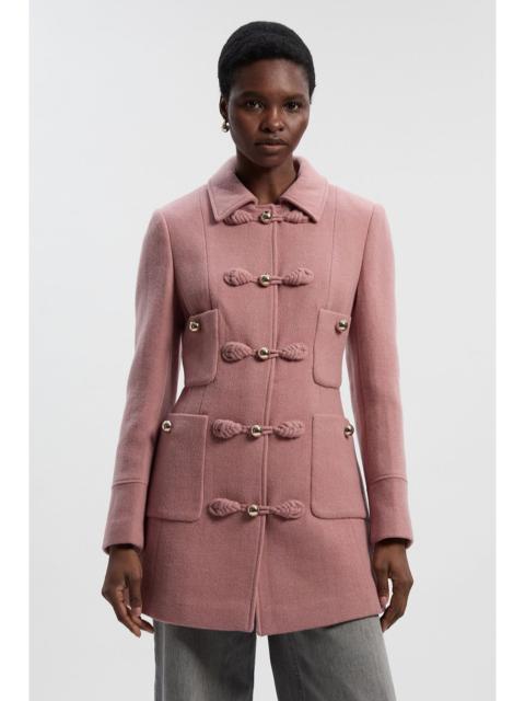 Brushed Wool Check & Pu Trim Belted Tailored Double Breasted Midi Coat