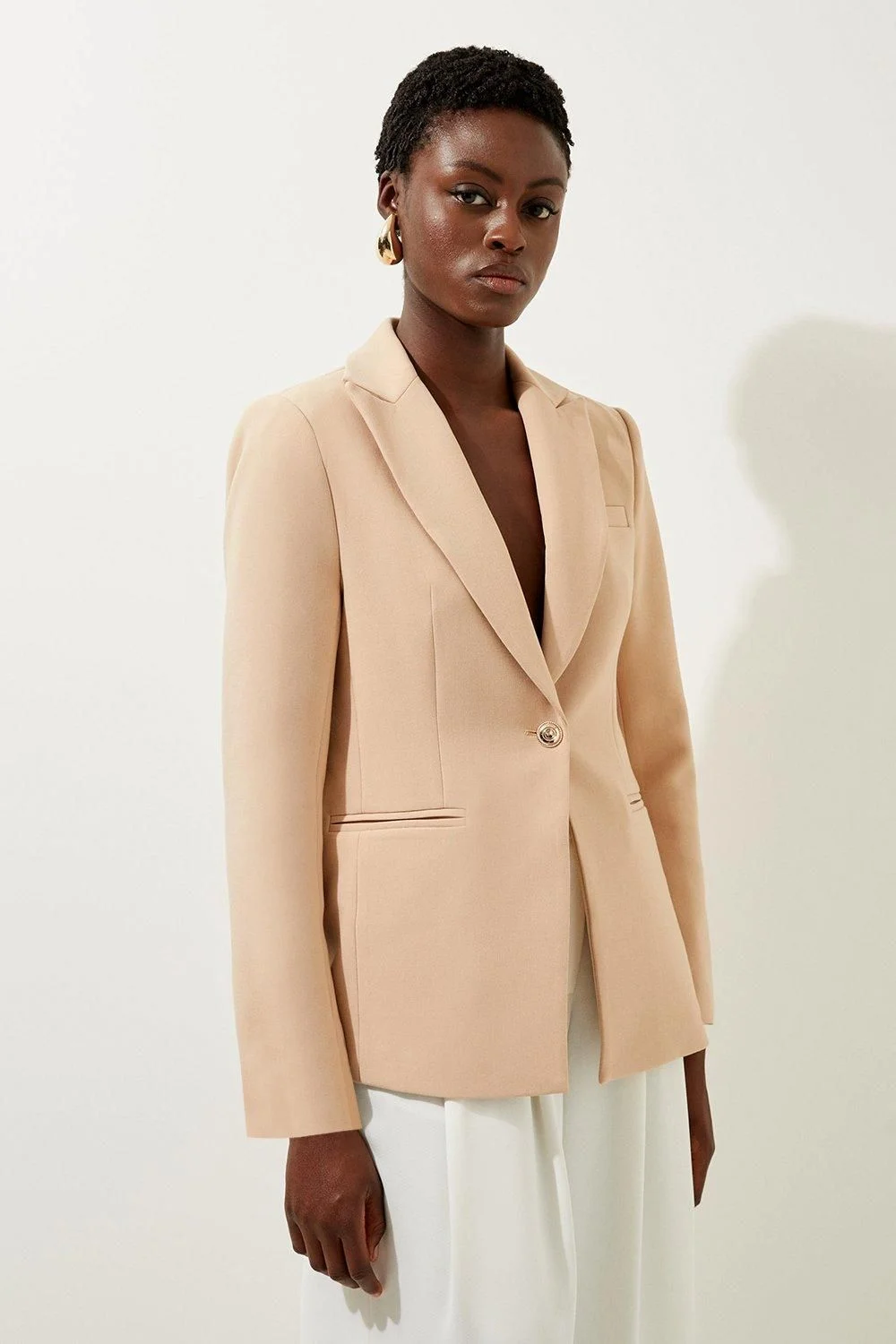 Radiate confidence in a tailored ensemble, with a blazer, tailor-made with a comfortable four-way-strecth fabric, a sleek design, and a fitted silhouette. Style this piece with the matching trousers and heels for a look that goes seamlessly from party nights to date nights. Compact Stretch Essential Single Breasted Tailored Blazer High Quality Stretch Fabric Clean, Sleek Design Plunging V Neckline Flattering Fitted Silhouette Button Front Fastening Matching Pieces Sold SeparatelyShop this seasons blazers or browse the full collection of coats and jackets now. Product Details & Care Main: 62% Polyester 31% Viscose/Rayon 7% Elastane/Spandex. Lining: 100% Polyester. Dry clean only. Model wears UK Size 8/ US Size 4. Model height approx: 5"9. Length approx: 70cm