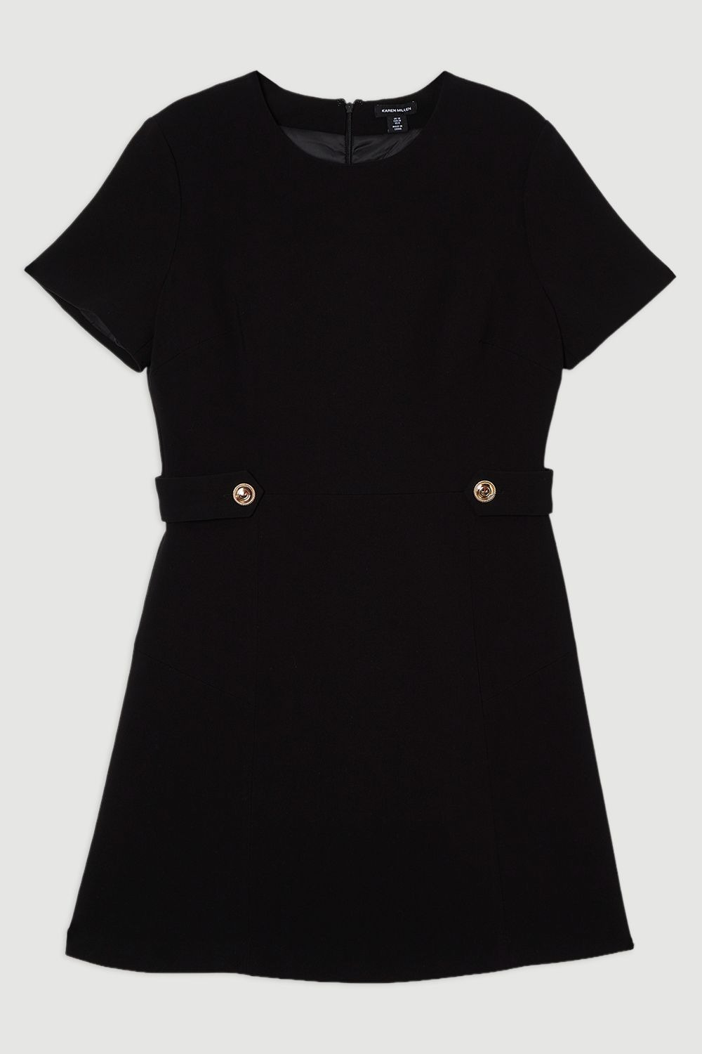 This Karen Millen tailored mini dress combines sophisticated design with everyday wearability. The distinctive waist tab detailing adds architectural interest to the clean silhouette, whilst the stretch-enhanced fabric ensures comfort without compromising on structure. Its understated elegance makes it perfect for those occasions when you want to look polished without appearing overdressed. The mini length showcases the legs whilst the modest neckline maintains a balanced, sophisticated look that transitions effortlessly from day to evening. Distinctive waist tab detailing with button accents Clean collarless neckline Short sleeves Compact stretch fabric Tailored mini length with subtle A-line shape Product Details & Care Main: 62% polyester, 31% viscose, 7% elastane. Machine wash. Model wears UK8/US4. Model height 5"9. Length approx: 90cm