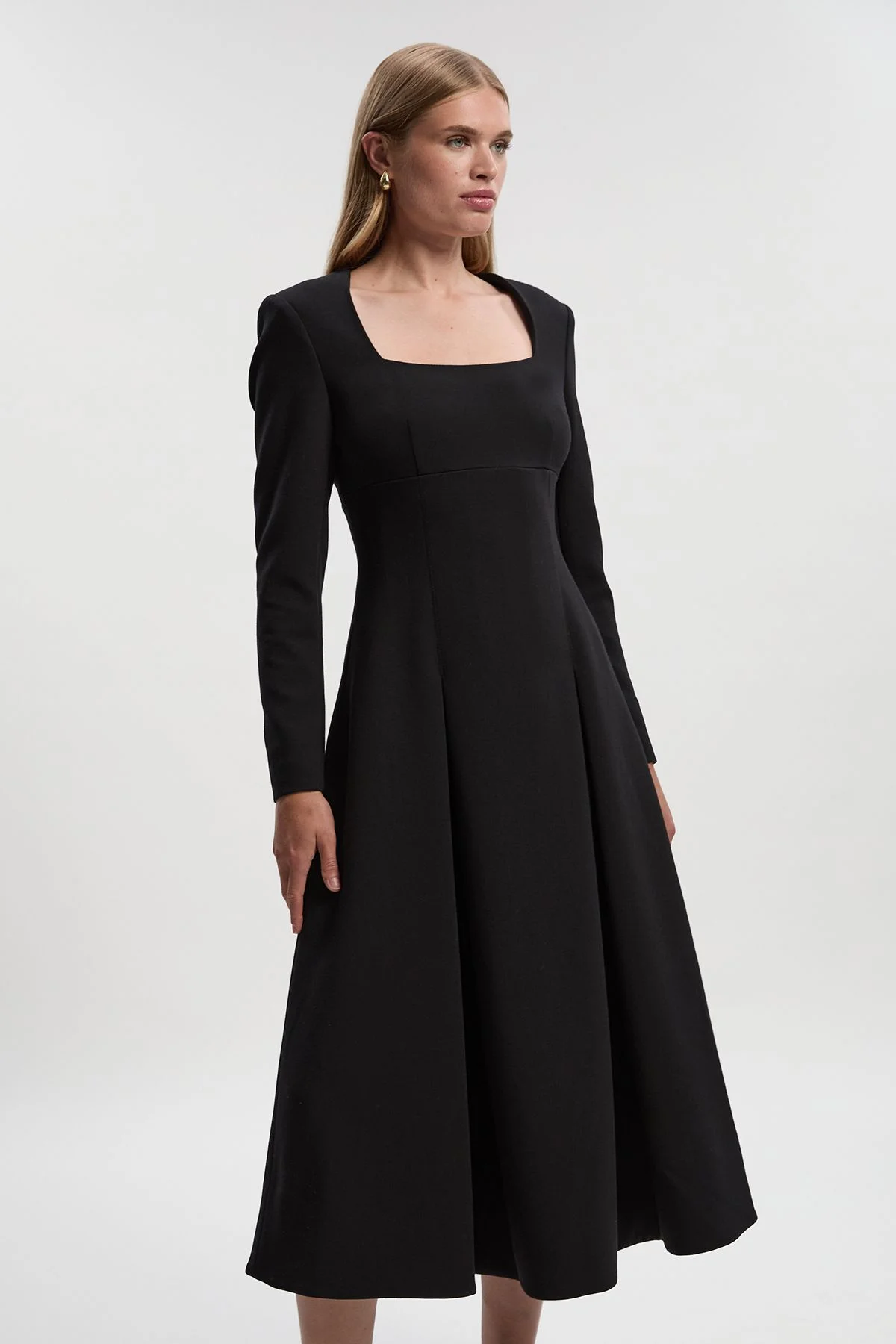 - Elegant sweetheart neckline creates a flattering frame for decolletage - Structured long sleeves add sophistication and versatility across seasons - Compact stretch fabric offers comfortable movement while maintaining shape - A-line midi silhouette creates a graceful, feminine profile - Fully lined for smooth wear and enhanced comfort throughout the day This beautifully crafted midi dress combines timeless elegance with contemporary design. The distinctive sweetheart neckline adds a touch of romance while the structured silhouette creates a refined daytime look. Perfect for those occasions when you want to appear effortlessly put-together, this dress transitions seamlessly from office meetings to lunch dates. Style with minimal gold jewellery and ballet flats for a sophisticated daytime ensemble, or dress it up with statement earrings and block heels for evening gatherings. The stretch composition ensures comfort for all-day wear whilst maintaining its elegant shape. A versatile wardrobe investment that works wonderfully for family celebrations, gallery visits or upscale brunches - this dress embodies the Karen Millen commitment to expert craftsmanship and contemporary sophistication. Product Details & Care Main: 69% Polyester, 24% Viscose/Rayon, 7% Elastane/Spandex. Lining: 100% polyester. Model wears UK8 / US4. Model height: 5"9. Length approx:106cm