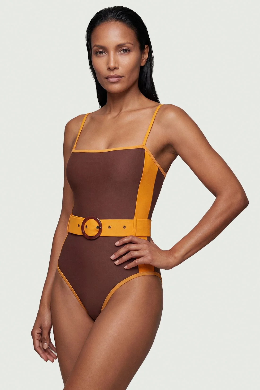 - Striking contrast panelled design with bold trim detailing - Sophisticated bandeau neckline for a clean, elegant silhouette - Statement belt with circular buckle to define and flatter the waist - High-cut leg design for an elongating effect - Stretchy, comfortable fabric blend offering excellent shape retention This Karen Millen bandeau swimsuit combines contemporary design with timeless sophistication. The contrast panelling creates a striking visual effect while the removable belt with its distinctive circular buckle cinches the waist for a flattering silhouette. Perfect for poolside lounging at exclusive resorts or relaxed beach days, this piece offers both style and practicality. Pair with oversized sunglasses and a wide-brimmed hat for classic riviera chic, or layer under a flowing kaftan for elegant transitions from swim to casual lunch settings. The supportive bandeau design ensures comfort throughout the day, whilst the high-cut leg elongates your figure beautifully. This versatile swimwear essential works wonderfully for family gatherings by the pool or casual daytime events where sophisticated yet relaxed style is required. Product Details & Care Main/Lining: 82% Nylon. 18% Elastane/Spandex. Cool hand wash separately. Do not bleach. Do not tumble dry. Do not dry clean. Line dry. Model wears UK size Small. Models height approx: 5"9.