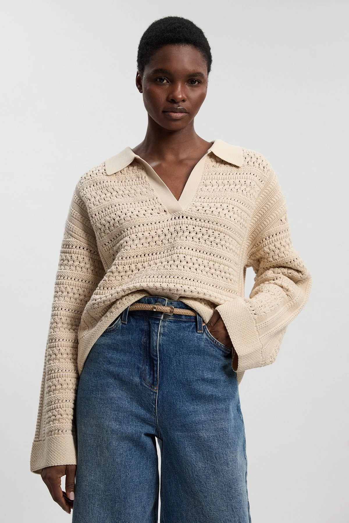 Cotton Collared V Neck Knitted Jumper Product Details & Care Body: 100% Cotton, Trim: 63% Viscose/Rayon, 37% Polyamide, Wash with similar colours, Do not bleach, Dry flat away from direct heat and sunlight, Lightly steam to regain appearance. Models wears UK size Small. Models height approx: 5"9.