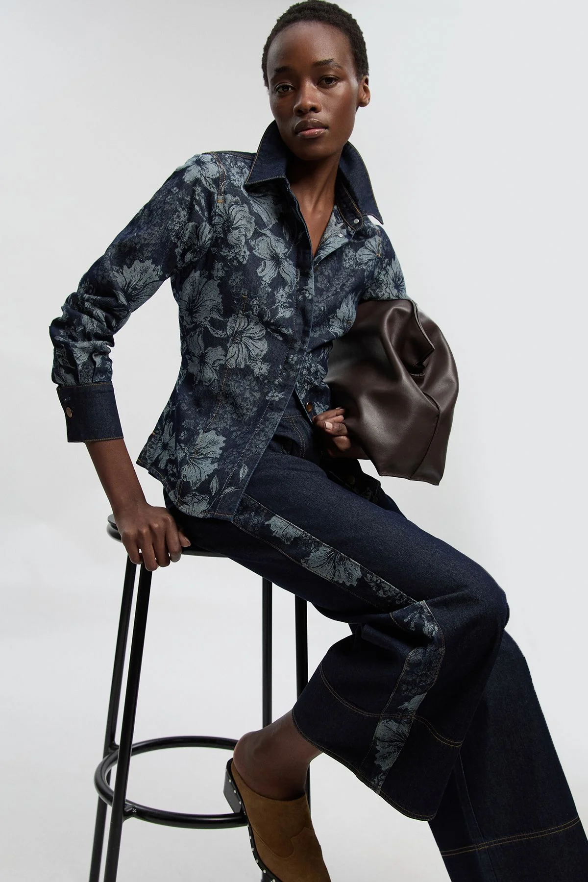 - Striking jacquard contrast panels create a distinctive design statement - Wide leg silhouette offers contemporary volume and movement - Cotton fabric provides comfort and breathability for all-day wear - Contrast side panels extend down the full length for a cohesive look - High-rise waist creates an elongated silhouette These statement wide leg jeans redefine contemporary denim with their artistic jacquard contrast panels. The bold design creates visual interest while maintaining sophistication, perfect for the woman who appreciates artisanal details. Style with the matching jacquard shirt for a coordinated ensemble that exudes confidence, or pair with a simple fitted top to let the jeans take centre stage. The generous wide leg cut offers both comfort and drama, making these jeans versatile enough for elevated daywear or evening occasions. Complete the look with ankle boots and a structured handbag for a polished aesthetic that transitions effortlessly from office to dinner. The cotton construction ensures these jeans will become a comfortable yet distinctive addition to your carefully curated wardrobe, embodying Karen Millen's commitment to contemporary craftsmanship. Product Details & Care Main: 100% Cotton. Machine Wash. Model wears UK Size 10/US Size 6. Model's height 5'9". Length approx. 102cm