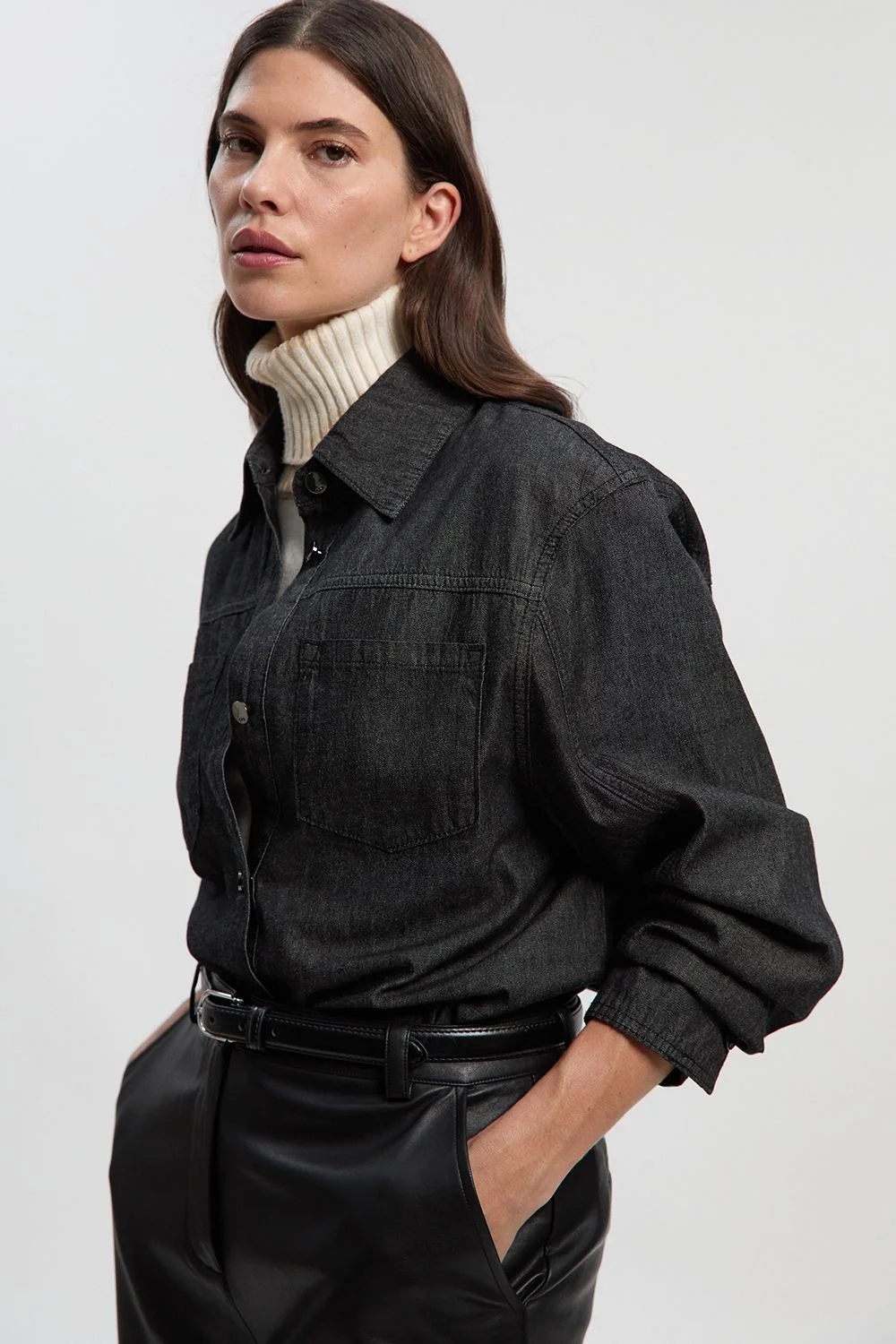 - Classic collared denim shirt with traditional button-through fastening - Relaxed regular fit with generous sleeves for comfortable layering - Practical chest pocket adds functional detail to this versatile piece - Cotton-rich fabric offers breathable comfort for all-day wear - Approximately 77cm in length, perfect for tucking or wearing loose This Karen Millen denim shirt embodies effortless sophistication for the contemporary woman. The timeless design features a structured collar and relaxed silhouette that transitions seamlessly from casual daywear to smart-casual occasions. Style tucked into leather trousers with a belt as pictured for a refined contrast of textures, or pair with tailored wide-leg trousers for family gatherings. For a more casual approach, layer over a ribbed roll neck jumper during cooler months or wear open over a simple camisole when temperatures rise. The versatile nature of this piece makes it ideal for weekend brunches, gallery visits or casual office days. Complete your look with minimal jewellery and flat ankle boots for an ensemble that reflects polished daytime elegance with a subtle edge - perfectly capturing the sophisticated yet contemporary spirit that defines the Karen Millen aesthetic. Product Details & Care Main: 80% cotton, 15% polyester, 5% viscose. Model wears UK8/US4. Model height 5"9. Length approx: 77cm