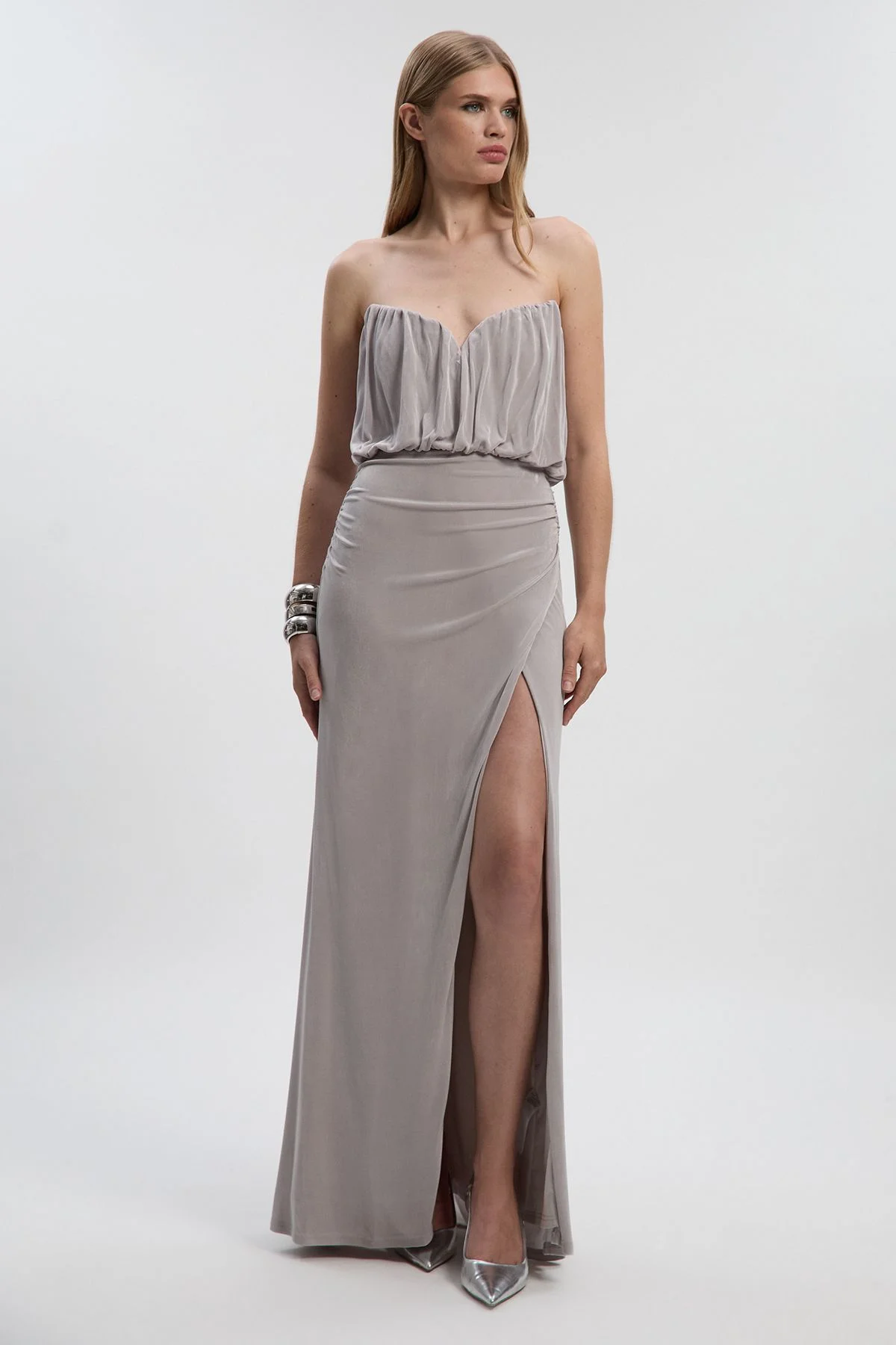 Drapey Crepe Bandeau Split Maxi Dress