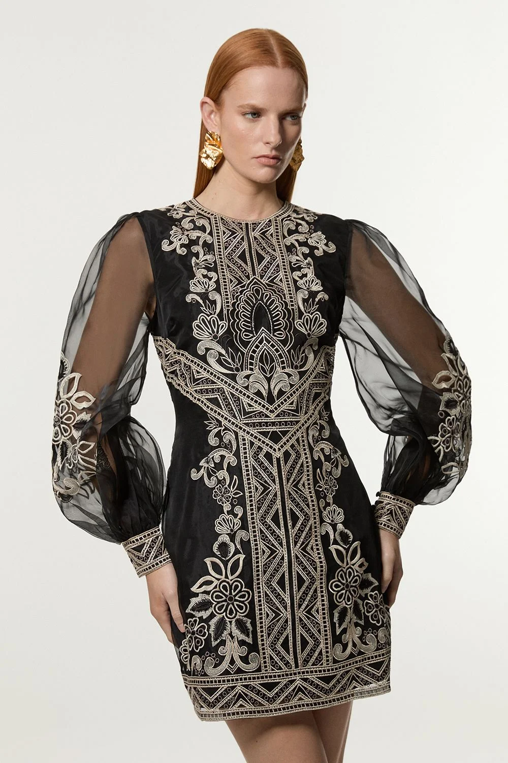 This Karen Millen Embroidered Organdie Balloon Woven Mini Dress showcases exceptional craftsmanship with its ornate embroidery and beaded detailing. The contrast between the sheer balloon sleeves and the structured bodice creates a captivating silhouette that commands attention. The mini length and intricate detailing make it ideal for formal events. This piece represents timeless occasion wear with a contemporary twist. Embroidered organdie mini dress Statement balloon sleeves Crew neckline Fitted bodice Beaded embellishments Product Details & Care Shell :100% Polyester. Lining: 100% Polyester. Trim: 100% polyester. Bead: Plastic. Wash with similar colours. Place in a delicates bag prior to cleaning. Model wears UK Size 10. length measures 90cm. Model height is 5"9.