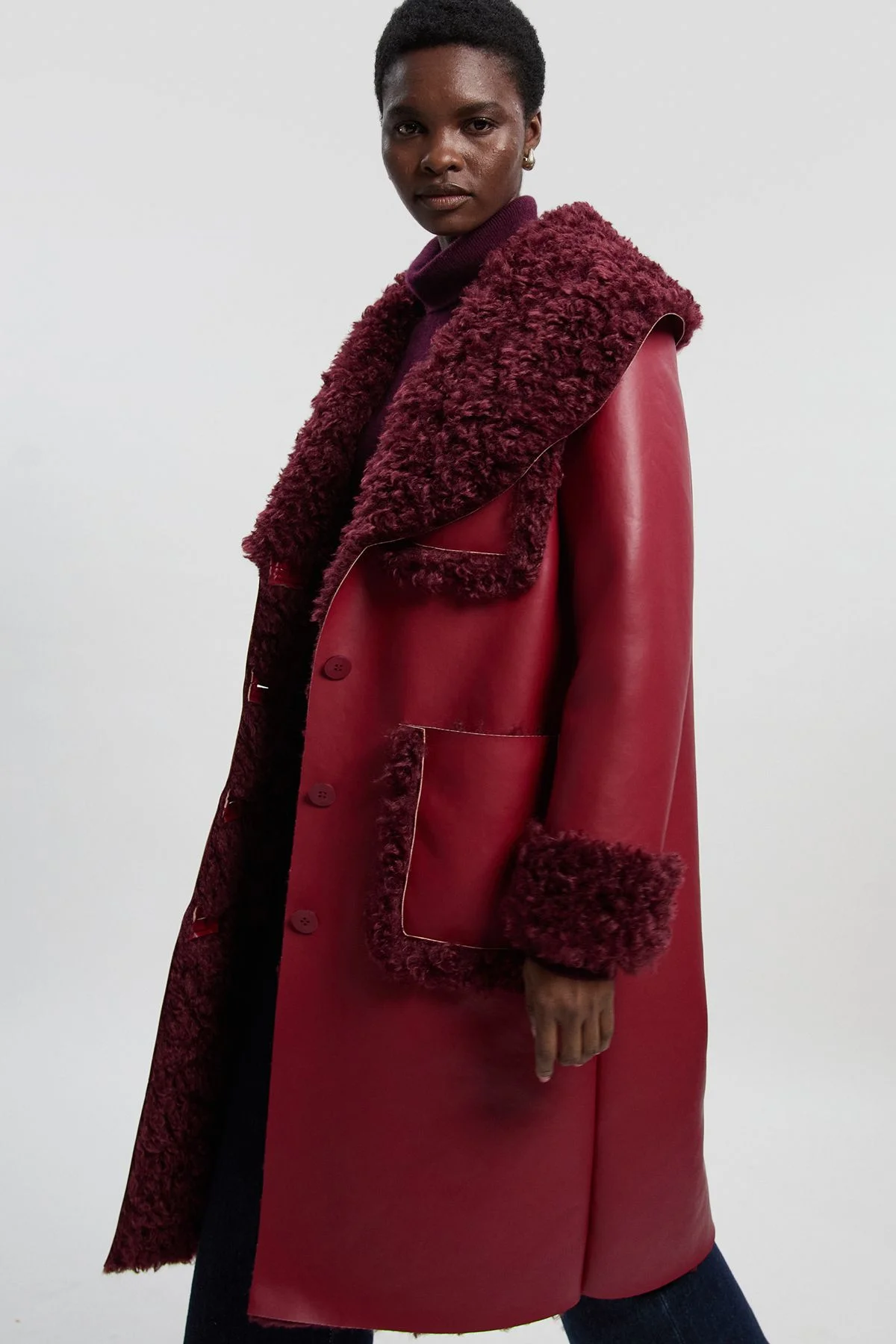 - Luxurious faux fur trim adorns the collar, cuffs and pocket details for a statement finish - Midi length design offers optimal coverage whilst maintaining a contemporary silhouette - Practical side pockets provide both functionality and a stylish design element - Structured collared neckline creates a sophisticated frame for your face - Regular fit allows for comfortable layering over your favourite autumn and winter ensembles Make a bold impression with this striking Faux Fur Pocket Detail Midi Coat from Karen Millen. The contrasting textures create a contemporary aesthetic that showcases expert craftsmanship and attention to detail. Style with straight-leg denim and ankle boots for an effortlessly chic daytime look, perfect for weekend brunches or family gatherings. The versatile design transitions seamlessly from casual coffee dates to shopping trips with friends. For cooler days, layer over a fine knit jumper and finish with a cross-body bag for a polished yet practical ensemble. This coat offers the perfect balance of statement style and everyday wearability, making it an essential addition to your autumn-winter wardrobe that will serve you for seasons to come. The thoughtful pocket detailing adds both functionality and visual interest to this sophisticated piece. Product Details & Care Coating: Polyurethane. Lining: 100% polyester. Model wears UK8/US4. Model height 5"9. Length approx: 105cm