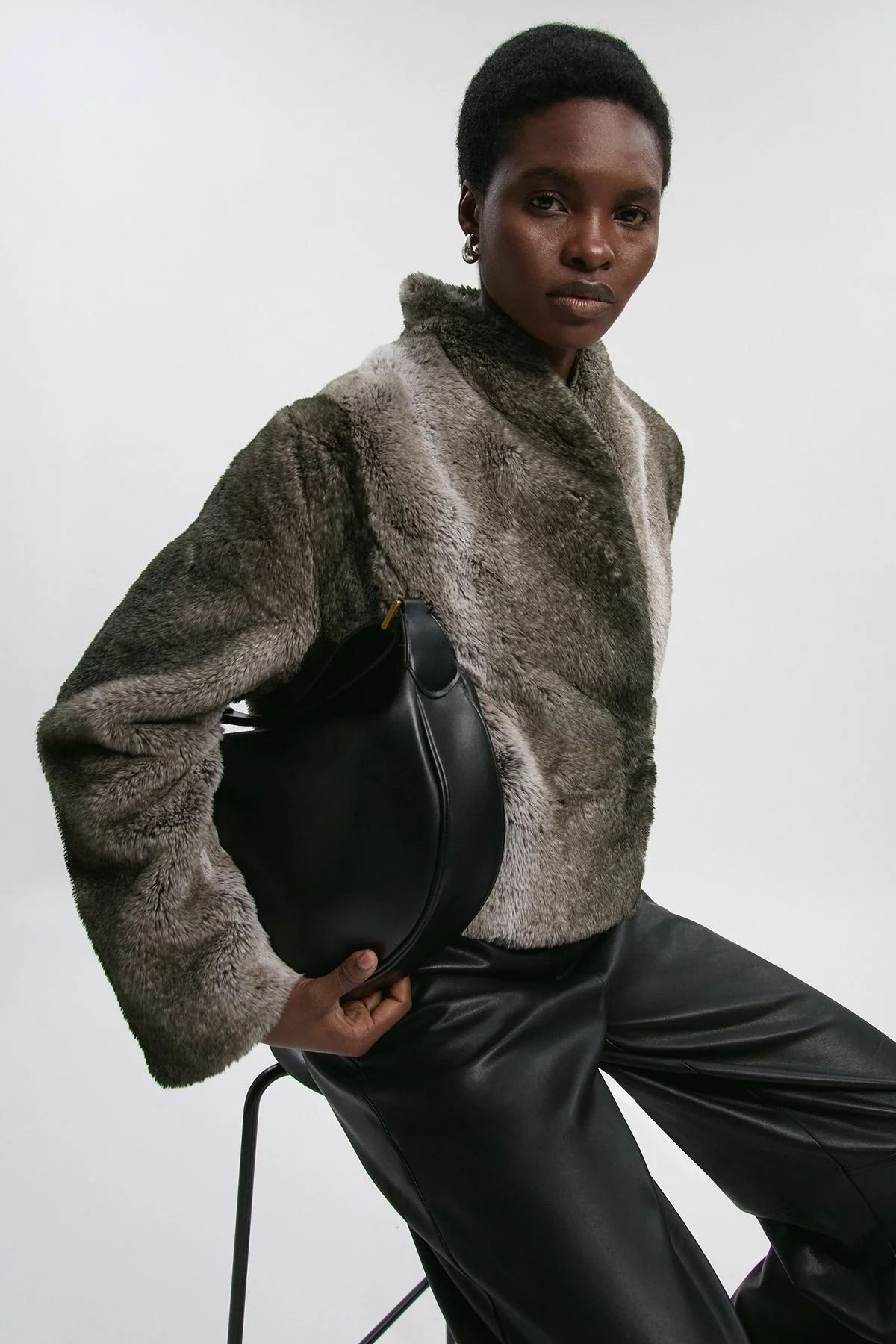 This Karen Millen faux fur short coat combines practicality with polished style. The soft texture and high neck create a refined daywear piece that keeps you warm. The regular fit allows for easy layering over knitwear, while the cropped length adds a modern twist to a classic silhouette. Designed with thoughtful craftsmanship, this coat transitions seamlessly from shopping trips to casual dinners and is a timeless addition to any outerwear collection. Soft faux fur for comfort and warmth High neck design Cropped length Regular fit for layering Fully lined interior Product Details & Care Main: 100% Polyester. Lining: 100% Polyester. Model height 5"9. Model wears UK8/US4. Length approx: 50cm