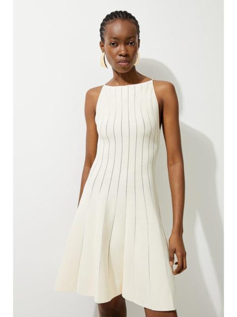 - Figure-hugging bandage knit design that contours to your silhouette - Dramatic tassel hem with asymmetric cut creates movement and dimension - Sleeveless construction with elegant round neckline for timeless appeal - Stretchy fabric ensures comfort whilst maintaining a structured shape - Approximately 140cm in length for a striking floor-length statement Make an unforgettable entrance in this Karen Millen Figure Form Bandage Tassel Hem Knitted Dress. The sophisticated design combines a sleek, body-contouring upper with a show-stopping tassel hem that sways gracefully with every step. Perfect for formal occasions, this dress commands attention whilst maintaining an air of refined elegance. Style with minimal jewellery to let the dress take centre stage - delicate drop earrings and a slim bracelet provide just enough sparkle without overwhelming. Complete your ensemble with strappy heeled sandals and a compact clutch for a balanced silhouette. The versatile design transitions seamlessly from wedding guest attire to race day elegance, ensuring you'll stand out for all the right reasons. This piece exemplifies Karen Millen's commitment to expert craftsmanship and contemporary sophistication - a true investment for your occasion wardrobe. Product Details & Care Main: 97% Recycled Polyester, 3% Elastane/Spandex. Trim: 100% Polyester. Wash on a 30 degree synthetic cycle with similar colours. Iron on reverse side. Dry clean co-ordinated garment together. Model wears UK size Small. Models height approx:5"9. Length approx: 140cm.