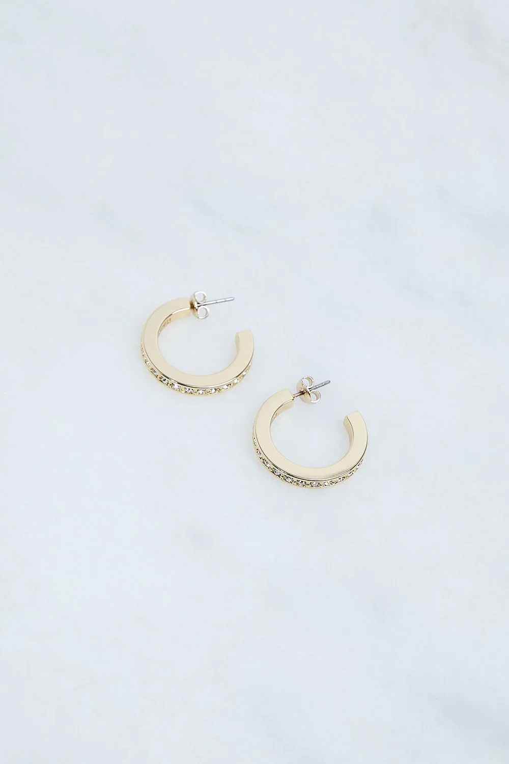 Elevate your look with Karen Millen's Small Crystal Hoop Earrings. These classic hoops are adorned with hand-set European crystals, creating a subtle sparkle that is suitable for daytime or evening wear. Finished in sleek gold-tone plating, they come packaged in a Karen Millen branded gift box. BRASS & CRYSTAL WITH 14CT GOLD TONE PLATING Classic hoop design Hand-set fine European crystals Hypoallergenic posts and secure earring backs Gift box packaging Please note, if the seal is broken, this item cannot be returned. Always put your Karen Millen jewellery on as a finishing touch after any perfumes or sprays. Keep away from water, sun cream, lotions, hand sanitiser, and other chemicals such as chlorine. To clean, we recommend using a soft cloth only - any chemicals or polishing liquids will wear away the plating. Jewellery should be carefully stored in the packaging provided. Always remember: It should be the last thing you put on in the morning, and the first thing you take off in the evening.Browse this seasons women's jewellery or discover the full range of women's accessories now. Product Details & Care Always put your Karen Millen jewellery on as a finishing touch after any perfumes or sprays. Keep away from water, sun cream, lotions, hand sanitiser, and other chemicals such as chlorine. To clean, we recommend using a soft cloth only - any chemicals or polishing liquids will wear away the plating. Jewellery should be carefully stored in the packaging provided. Always remember: It should be the last thing you put on in the morning, and the first thing you take off in the evening.