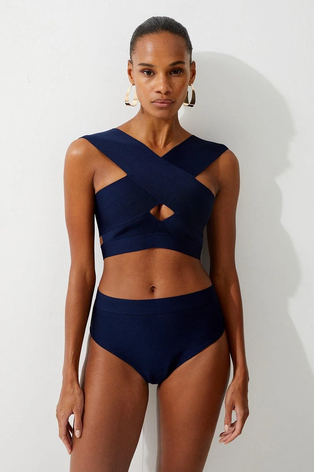 Get ready to lounge in the sun in a classic bikini set, the bottoms of which feature a high waistline, with a minimal design and a full coverage design. Style this piece with the matching top, as well as strappy sandals and a beach cover up for a holiday look that can be reworn time and time again. High Waisted Bandage Bikini Bottoms Sleek, Minimal Design Comfortable High Waistline Full Coverage Design Matching Top Sold Separately Whilst appropriate for a beach destination, please note that in order to ensure enduring quality, this piece is not recommended for swimming. Product Details & Care 97% Polyester, 3% Elastane. Wash with similar colours. Model wears Size Small. Model height approx 5"9. Length 27cm