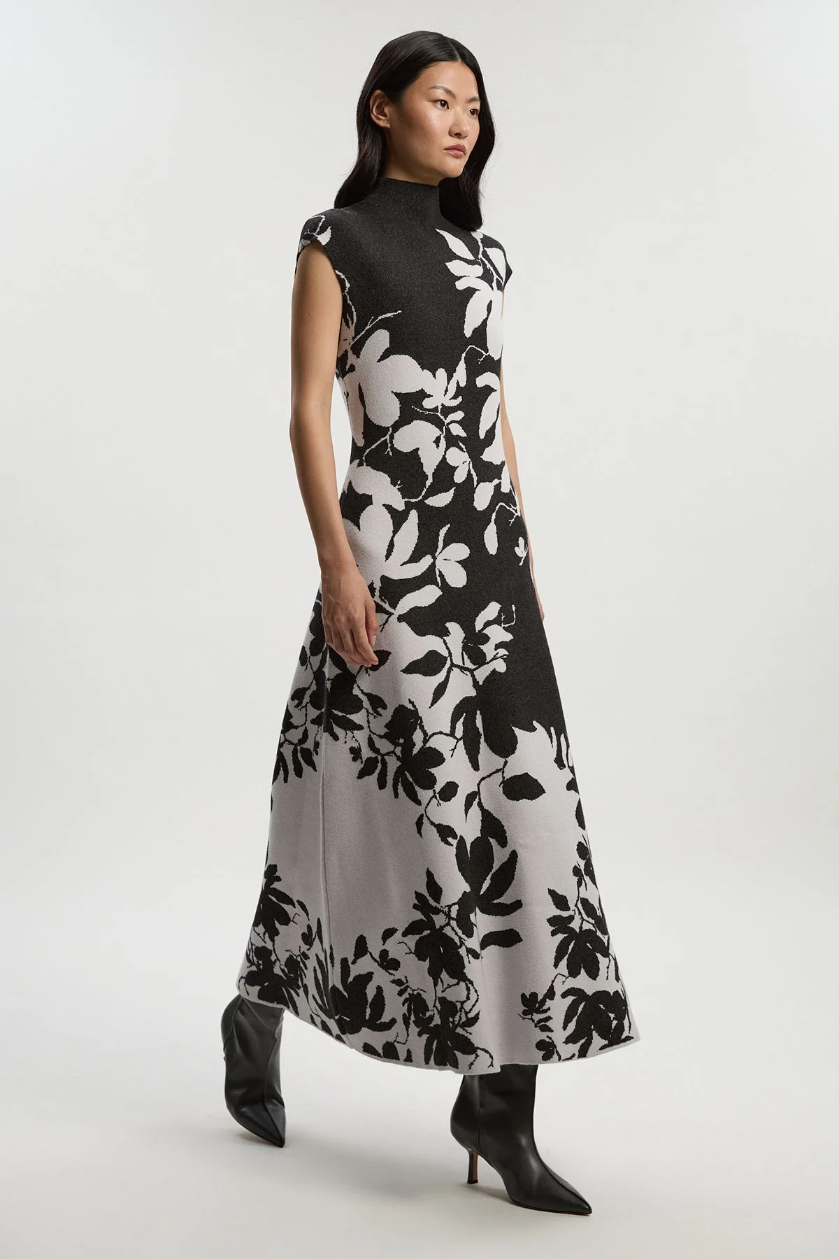 This Karen Millen jacquard knitted maxi dress combines artful design with everyday wearability. The high neckline and sleeveless cut create a canvas for the dramatic floral pattern to truly shine, whilst the knitted construction ensures both comfort and structure. This piece reflects Karen Millen's commitment to expert craftsmanship and contemporary design, creating a wardrobe staple that transitions seamlessly from casual weekend plans to more polished daytime events. Jacquard knitted fabric Bold floral pattern High neckline Sleeveless design Flowing maxi length Product Details & Care 52% Viscose/Rayon, 28% Polyester, 20% Polyamide Machine wash at 30°C synthetic cycle, do not bleach, do not tumble dry, cool iron, do not dry clean, turn inside out before washing. Models wears UK size Small. Models height approx 5"9. Length approx: 131cm.