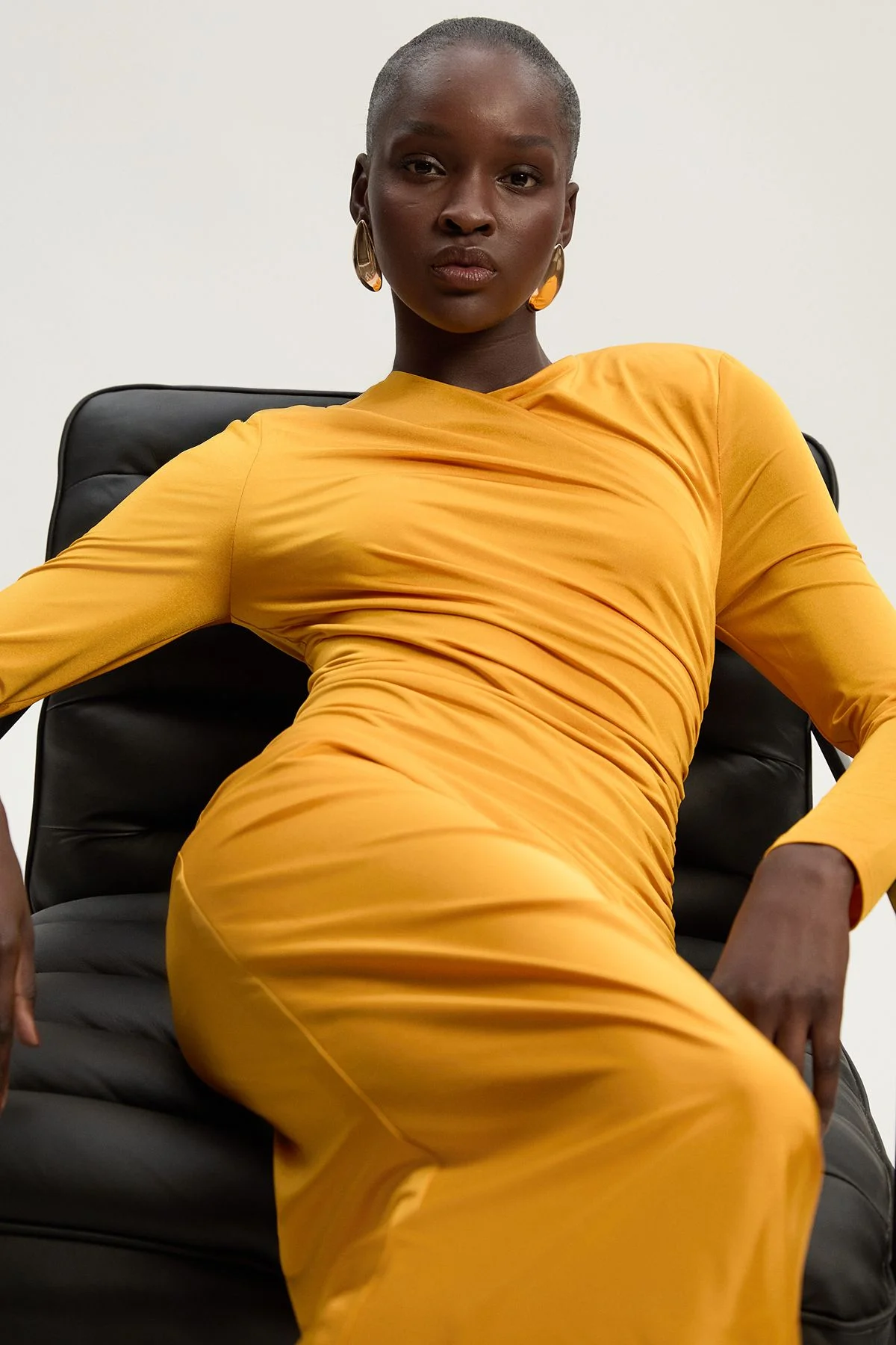 Presenting THE ICONS VOL.V, starring international supermodel, entrepreneur and television personality, Tyra Banks. Showcasing Tyra's glamorous yet timeless style, this collection is comprised of empowering pieces that immediately take centre stage.Artfully crafted with slinky jersey fabric, this maxi dress is detailed with flattering ruched details and an asymmetric hemline. Completed with a round neck, long sleeves and padded shoulders, style this piece with heels and statement accessories for a bold after-dark ensemble.Ruched jersey fabricLong sleevesAsymmetric hemlineRound neckline Product Details & Care Main: 68% Viscose, 27% Polyester, 5% Elastane. Gentle machine wash at 30 with similar colours. Model wears UK size Small. Models Height approx: 5''9. Centre back length approx: 90cm.