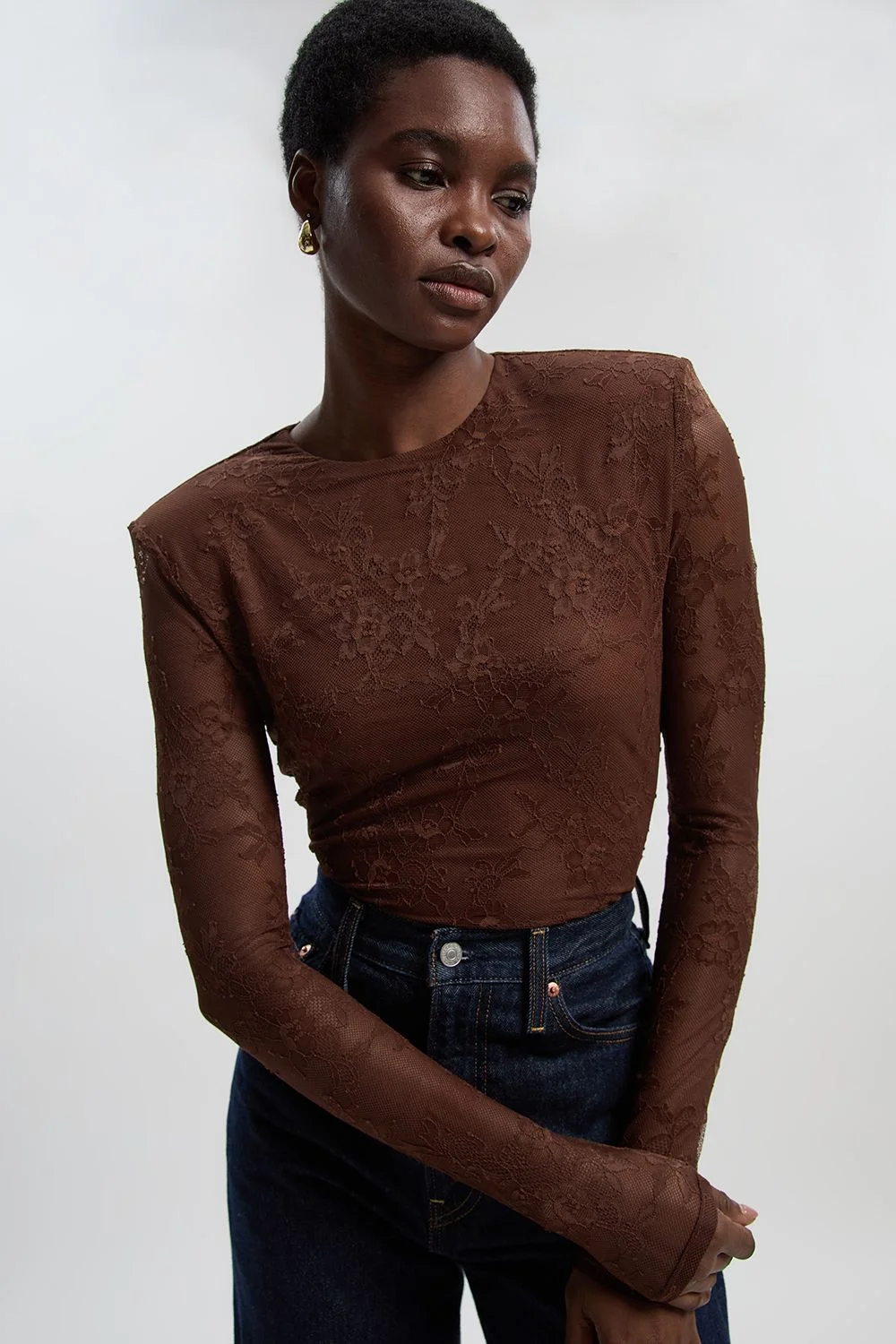 - Exquisite floral lace design creates a sophisticated sheer effect throughout - Sleek crew neckline offers a contemporary, refined silhouette - Long sleeves provide elegant coverage whilst maintaining the allure of the lace detail - Slim fit bodysuit contours beautifully to the figure for a streamlined look - Practical popper fastening at the gusset ensures comfort and ease of wear This striking lace bodysuit from Karen Millen embodies sophisticated glamour with its intricate floral pattern and sheer finish. The slim-fitting design creates a sleek silhouette that pairs effortlessly with high-waisted separates. Style as seen with leather trousers for an evening ensemble that balances texture and form beautifully. For formal occasions, tuck under a tailored blazer and pair with a structured midi skirt and court heels for a refined look that commands attention. The versatile crew neckline works wonderfully with statement jewellery for added drama, whilst the long sleeves offer an elegant touch that transitions seamlessly from day to evening events. This bodysuit serves as a foundation piece for countless sophisticated outfits, from cocktail parties to milestone celebrations. Product Details & Care Main: 85% nylon, 15% elastane. Model wears UK S. Model height 5"9. Approx length to gusset edge: 73cm