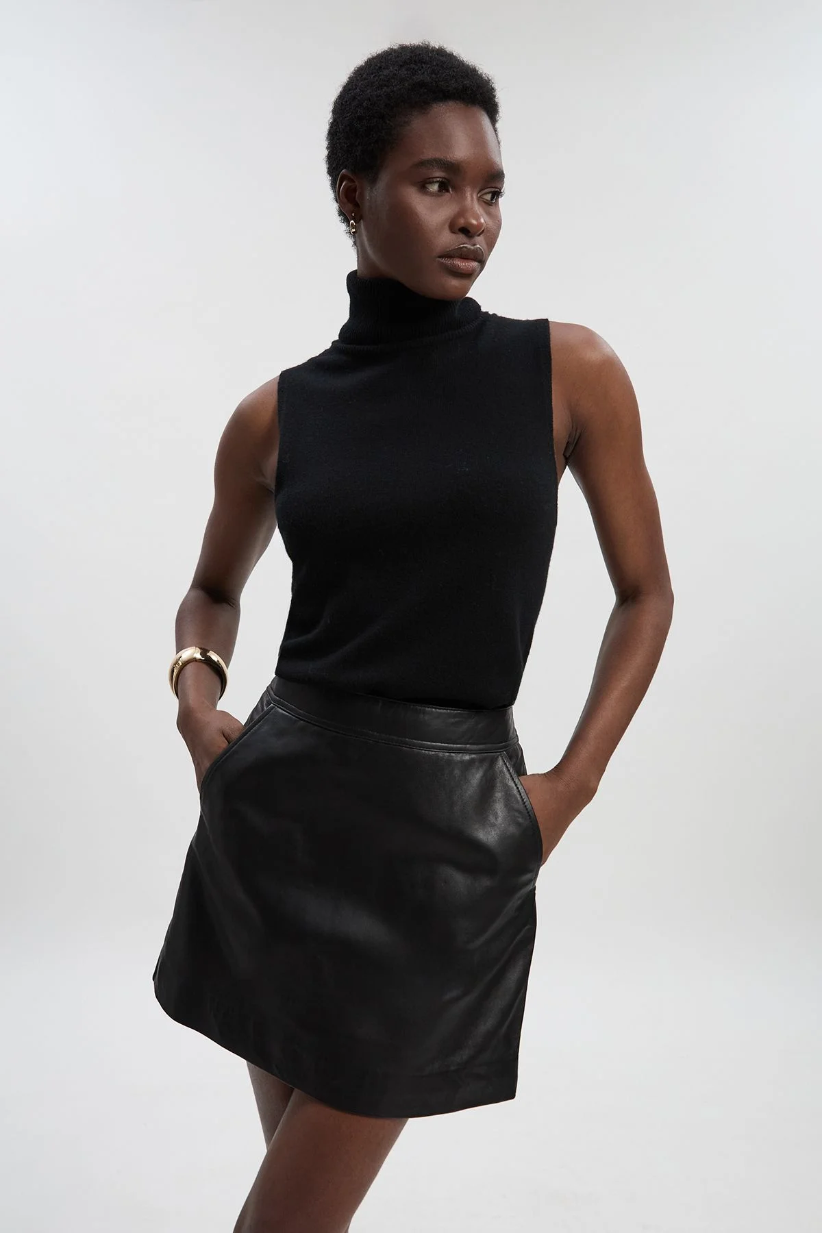 This Karen Millen Leather Signature Mini Skirt embodies sophisticated daywear with an edge. The timeless mini silhouette pairs effortlessly with a crisp button-down shirt for a polished look that transitions seamlessly from office to weekend plans. The genuine leather construction ensures this piece will develop a beautiful patina over time, becoming a cherished wardrobe staple that reflects the brand's commitment to expert craftsmanship and contemporary elegance. 100% genuine leather Mini silhouette with a high-waist design Practical side pocket detail A-line shape Back zip closure Product Details & Care Main: leather 100%. Model wears UK8/US4. Model height 5"9. Length approx: 40cm