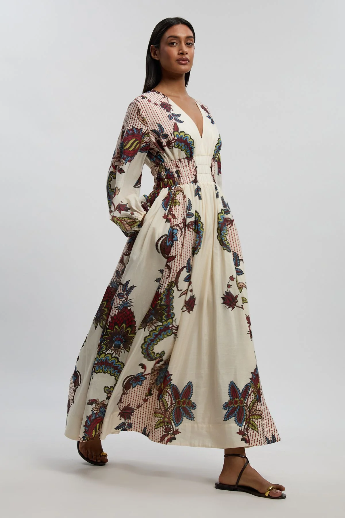 - Striking mirror print design creates a captivating visual impact across the entire maxi silhouette - Elegant plunge neckline adds a sophisticated touch to this occasion-ready piece - Dramatic balloon sleeves provide statement volume and contemporary flair - Luxurious silk cotton blend fabric offers exceptional drape and comfort for all-day wear - Floor-sweeping maxi length creates a graceful silhouette perfect for special events This exquisite maxi dress showcases Karen Millen's expert craftsmanship through its thoughtful design details. The striking mirror print creates visual interest while the plunge neckline adds a refined touch of allure. The statement balloon sleeves create architectural interest, balancing beautifully with the flowing maxi length. Style with minimal accessories to let the print take centre stage - a pair of delicate drop earrings and metallic strappy heels will complement without overwhelming. For formal occasions such as summer weddings or race days, add a structured clutch and an elegant fascinator. The versatile design transitions effortlessly from daytime garden parties when paired with flat sandals (as shown) to evening soirees with the addition of heeled mules and a tailored blazer. This dress represents the perfect marriage of contemporary design and timeless elegance. Product Details & Care 100% Polyester, Wash dark colour separately, Iron on reverse, Model wears UK 8/US 4. Model Height 5"9