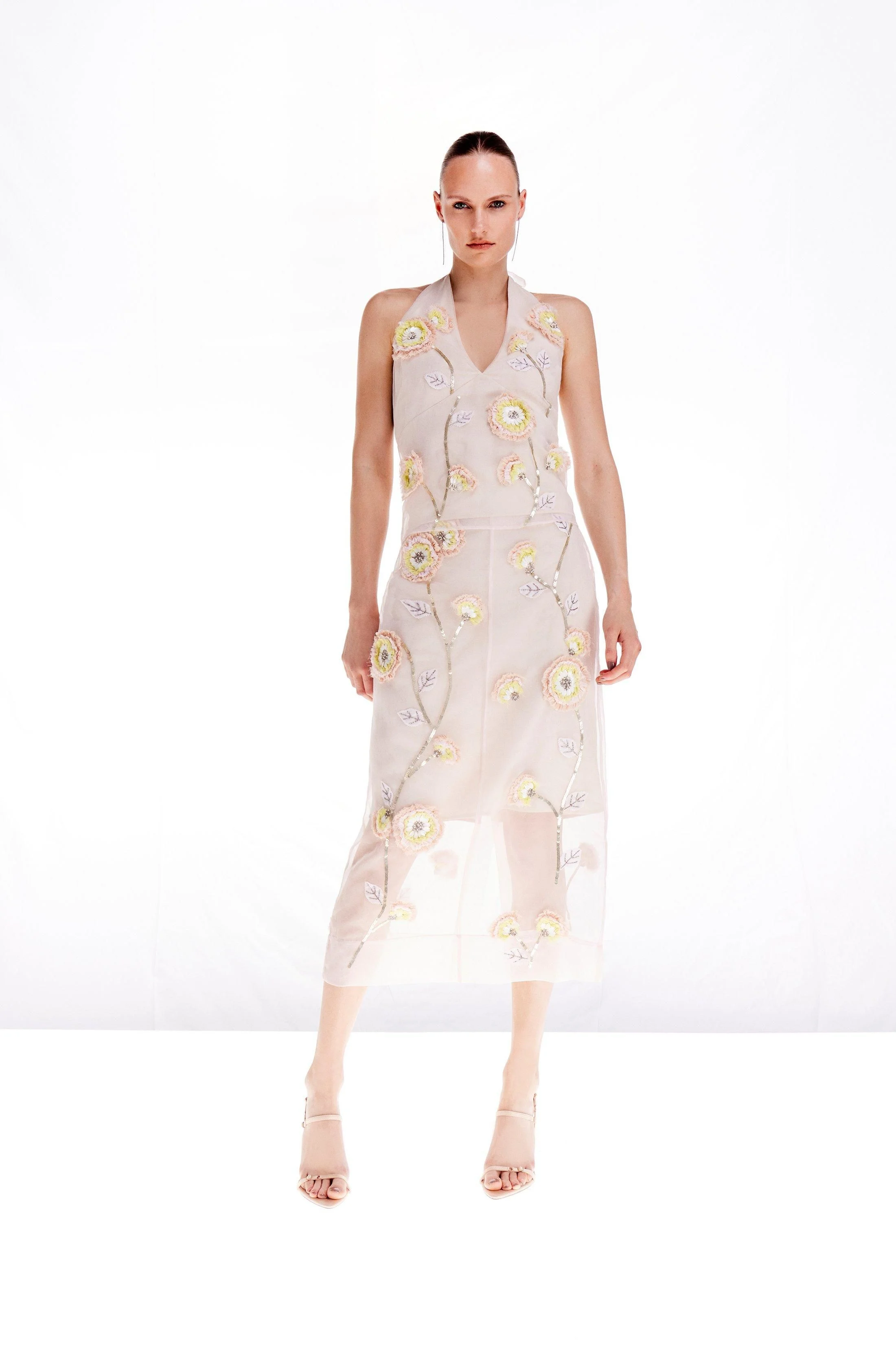 Ooto Organdie Applique Woven Midi Pencil Skirt