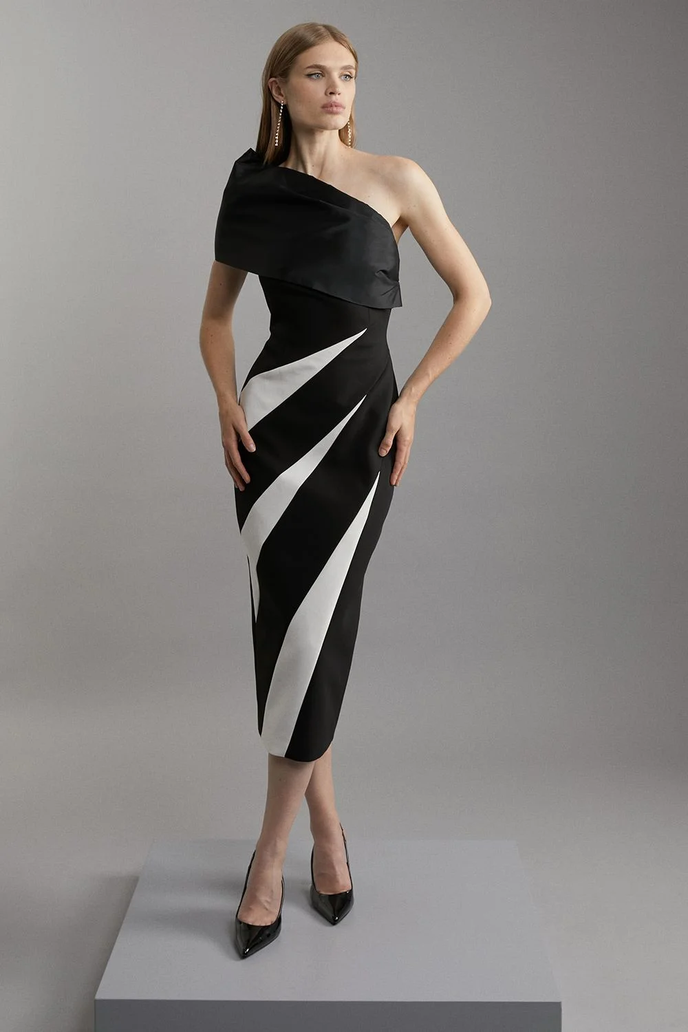 Elevate your occasion wear wardrobe with our petite midi dress, made in taffeta fabric, with a figure hugging fit. The thigh high leg split makes for easy movement, while the one shoulder design creates an enticing shape. Style it with strappy heels for an occasion look that is guaranteed to turn heads wherever you step. Petite Clean Tailored Taffeta One Shoulder Panel Midi Dress High Quality Taffeta Fabric Figure Hugging Fit Statement Contrast Panel Unique, Asymmetric Neckline One Shoulder Design Thigh High Leg Split in Back Expertly designed for those 5'3" and under, our Petite pieces are perfectly proportioned for a smaller frame using shorter lengths.Browse this seasons petite midi dresses or shop the full collection of women's petite clothing now. Product Details & Care Main: 49% Polyester. 25% Recycled Polyester. 19% Viscose/Rayon. 7% Elastane/Spandex. Excluding trims. Lining: 100% Polyester. Dry clean only. Model wears UKU/US4. Item length 93cm