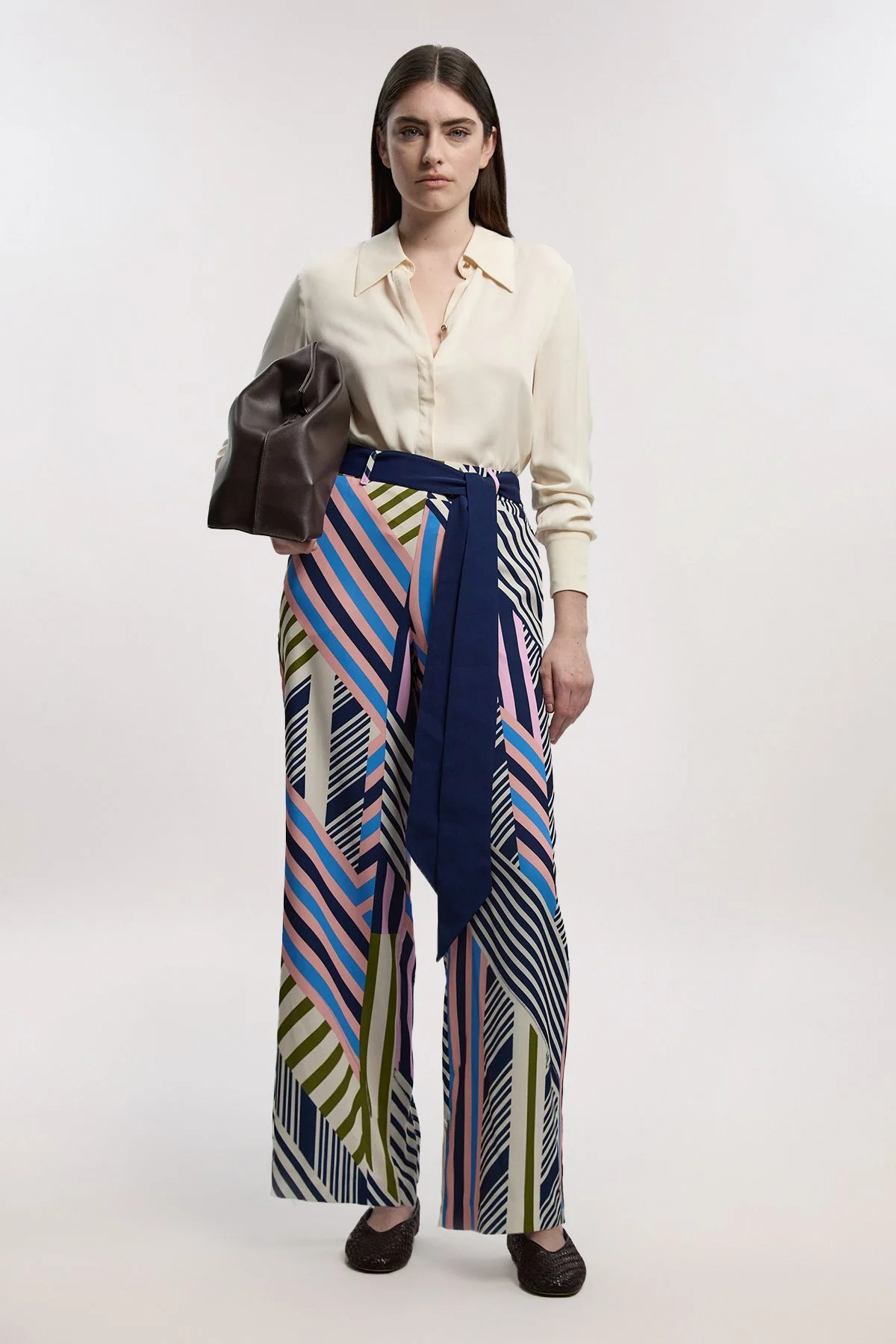 - Eye-catching geometric print in a striking multi-directional pattern - Flattering wide leg silhouette designed specifically for petite frames - Elegant tie waist detail adds definition and styling versatility - Smooth twill woven fabric offers comfortable structure and movement - Full-length design with approximately 98cm inseam, perfect for petite proportions Make a statement in these bold geometric print trousers, thoughtfully crafted for petite frames. The wide leg silhouette creates a contemporary silhouette whilst the tie waist detail adds a touch of sophistication and allows for customised fit. Style as seen with a simple button-down shirt for a balanced look that lets the print take centre stage. The smooth twill fabric ensures these trousers drape beautifully whilst maintaining their shape throughout the day. Perfect for elevating your daywear wardrobe, these versatile trousers transition effortlessly from office to weekend brunches. Pair with flat ballet pumps and a structured tote for running errands, or dress up with block heels and a fitted blouse for lunch with friends. The distinctive print adds artistic flair to your collection whilst remaining wonderfully wearable for numerous occasions. Product Details & Care Main: 100% polyester. Machine wash only. Model wears UK Size Petite 10/US Size 6. Model's height approx. 5'3". Length approx. 98cm