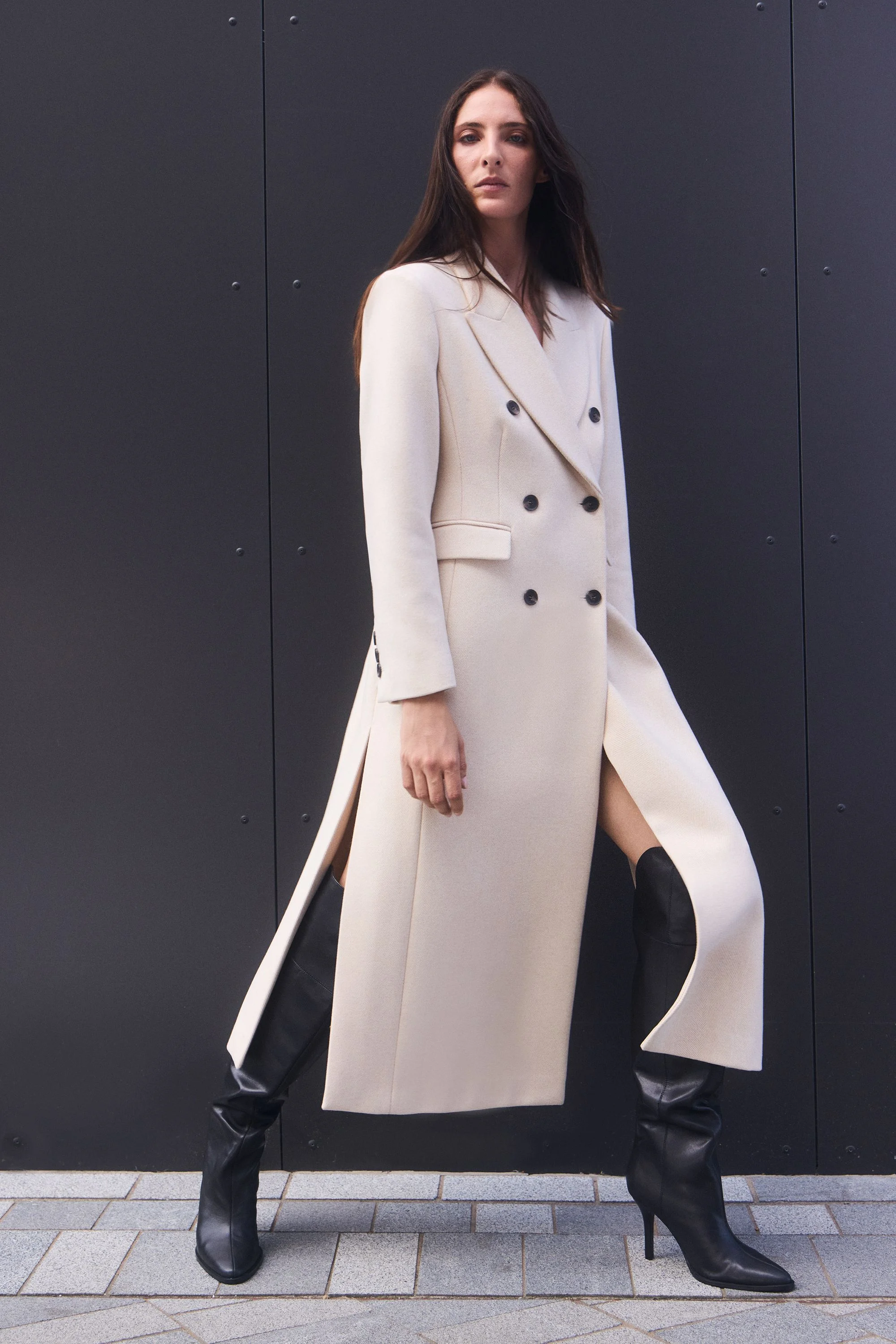 This striking double-breasted maxi coat from Karen Millen's collection presents a masterclass in refined daywear. The tailored silhouette creates a commanding presence while maintaining an effortless elegance that works for everyday occasions. The structured shoulders and defined waistline create a flattering shape that complements both casual and smart-casual ensembles. Double-breasted design Tailored maxi length Wool blend fabric Classic collared neckline with wide lapels Functional side pockets Product Details & Care Main: 50% Polyester, 47% Wool, 3% Other fibres, Lining: 55% Polyester, 45% Viscose/Rayon, iron on reverse. Model wears UK Size 8/ US Size 4. Model height approx: 5"9. Length approx: 128cm